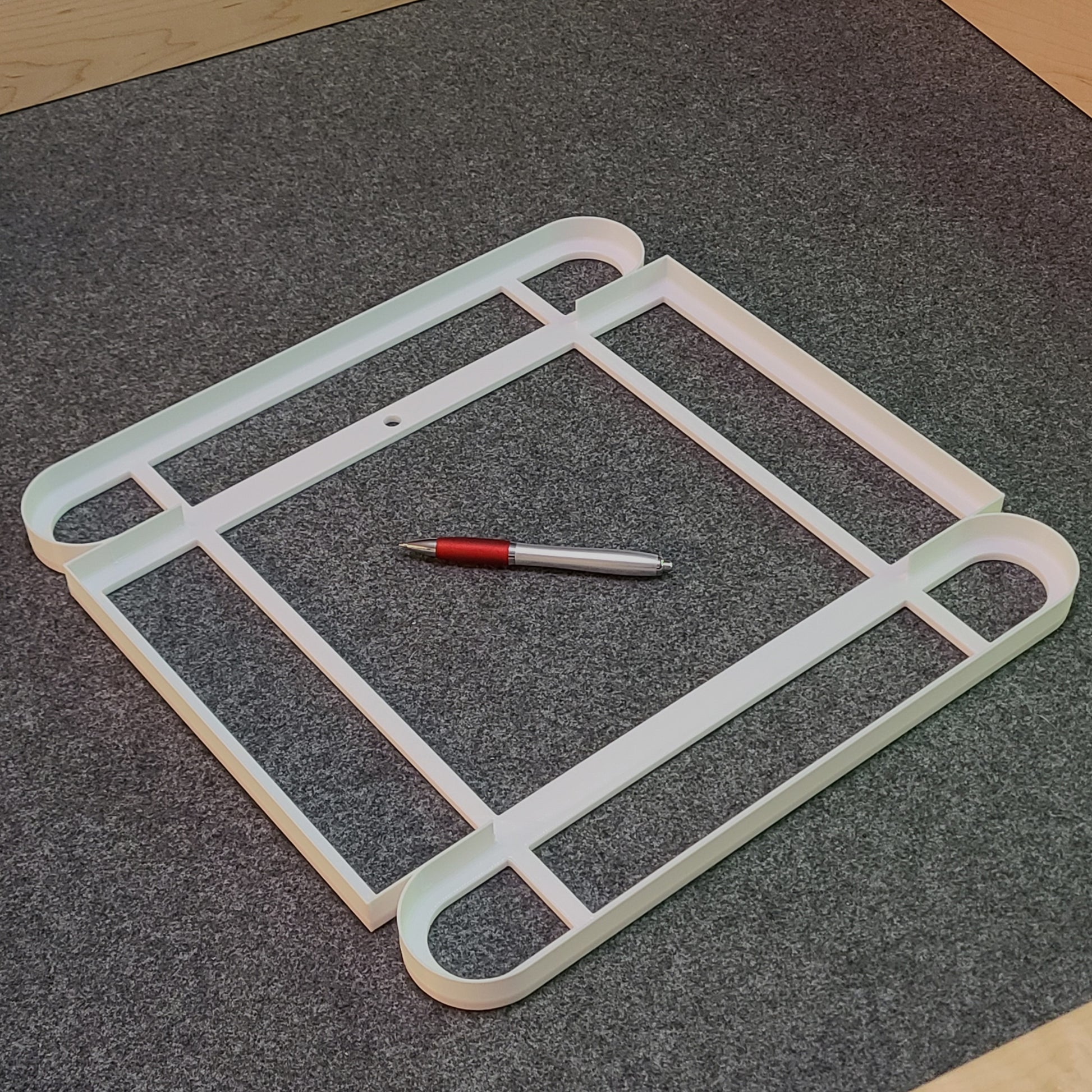 This cutter cuts a clay slab to make a 9" x 9" casserole dish. It's a collaboration between LittleChip Tools and Clay by Stacia. Stacia designed the template, and LittleChip translated it into a cutter.