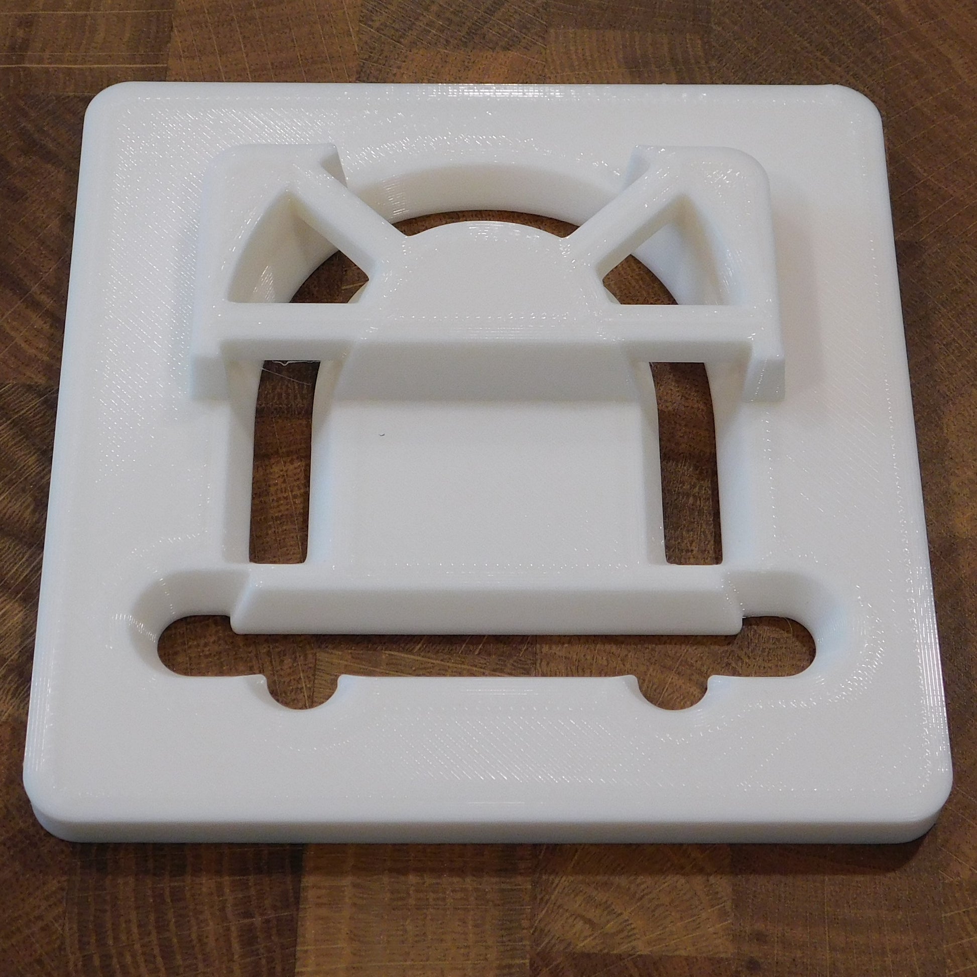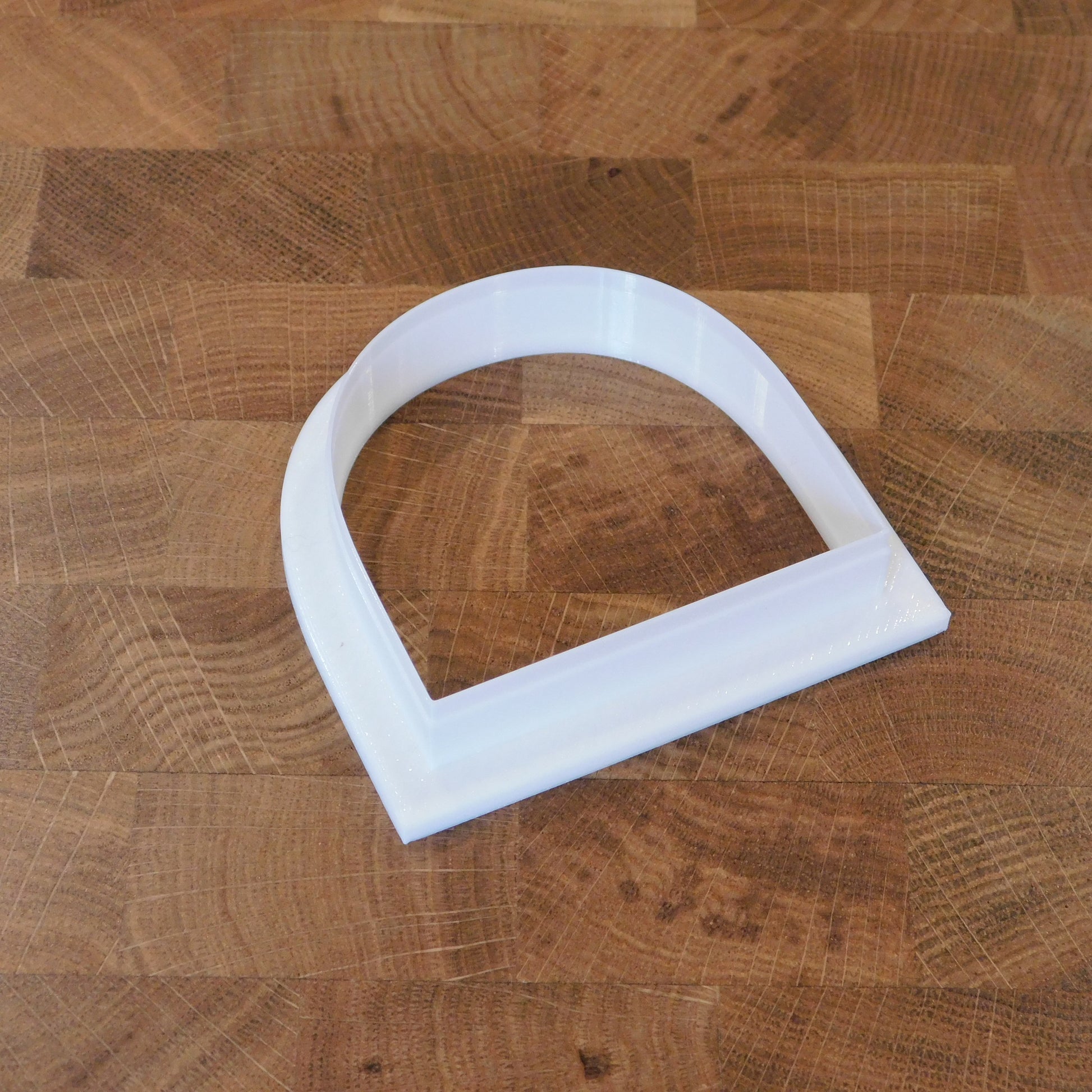 The die and cutter are 3D-printed using PLA filament. PLA is a plastic made from starch (not petrochemicals) and is compostable in industrial composters.