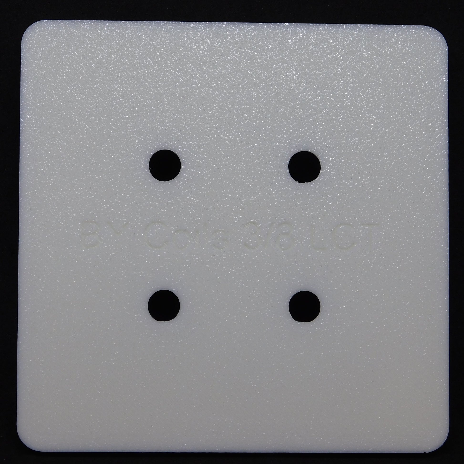 This die extrudes four coils, each 3/8" in diameter. The die fits in Bailey 4" square clay extruders.