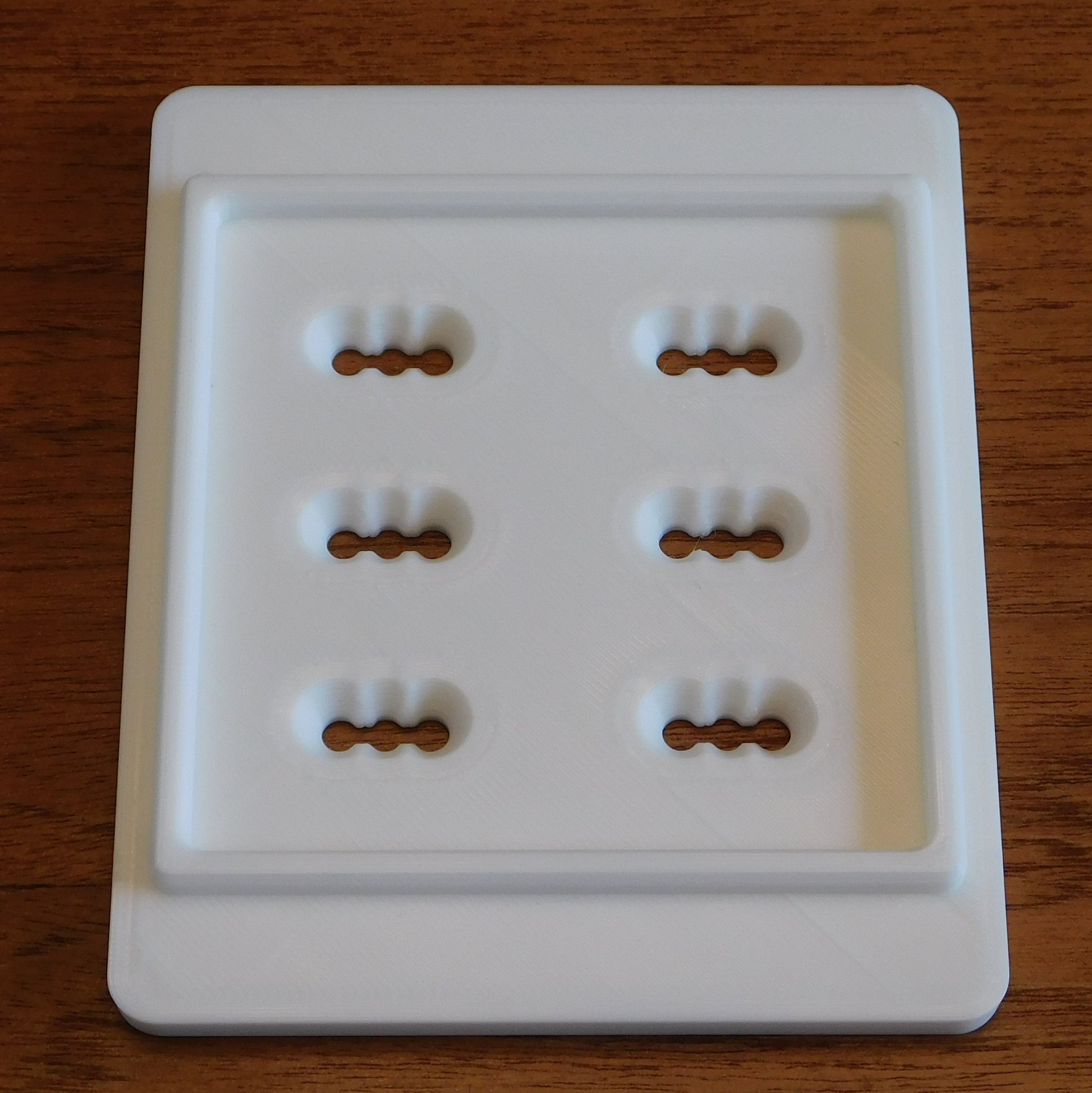 The die and cutter are 3D-printed using PLA filament. PLA is a plastic made from starch (not petrochemicals) and is compostable in industrial composters.
