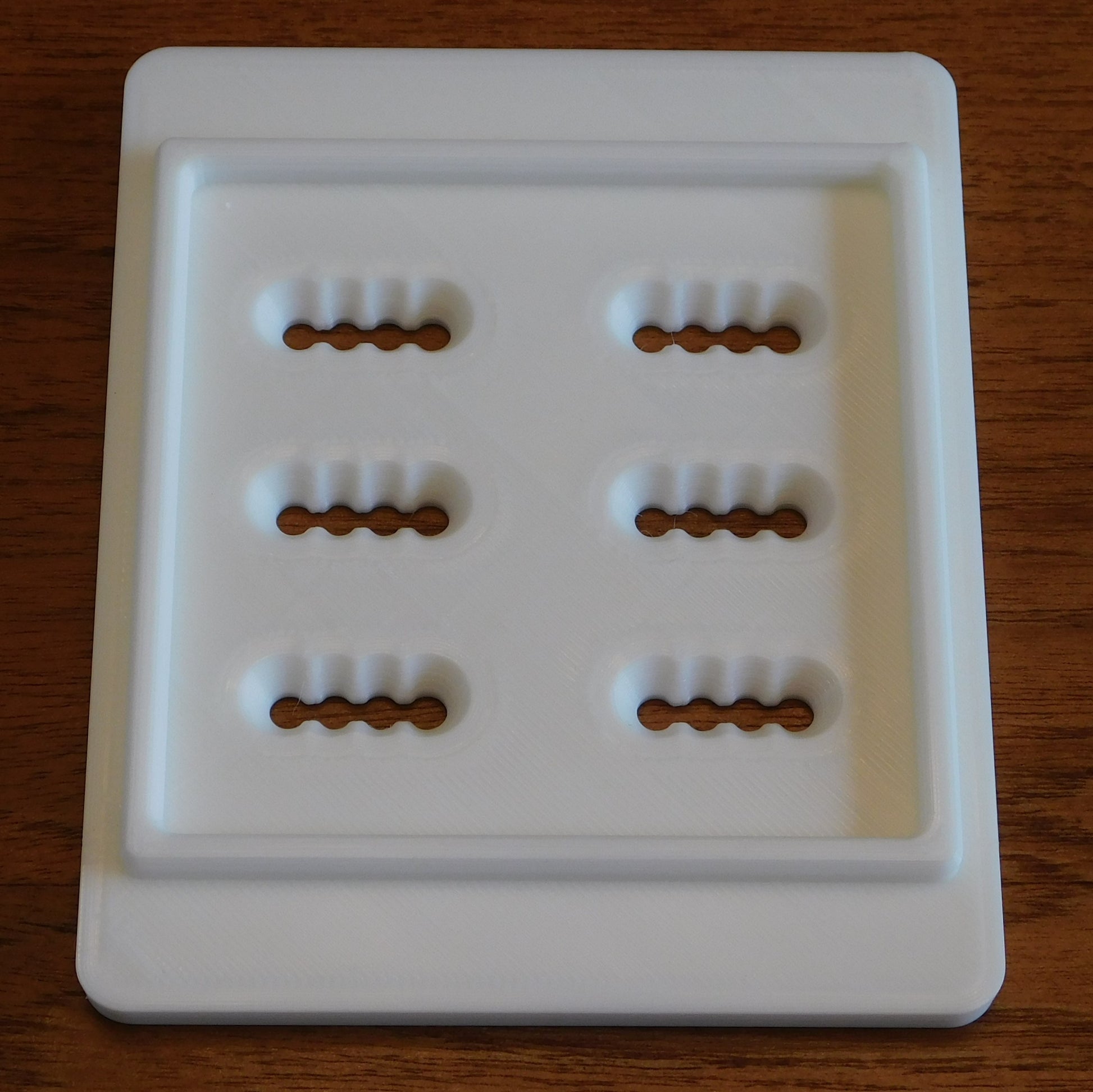 The low wall around the top of the die prevents clay from oozing out sideways, as sometimes happens with square extruders.