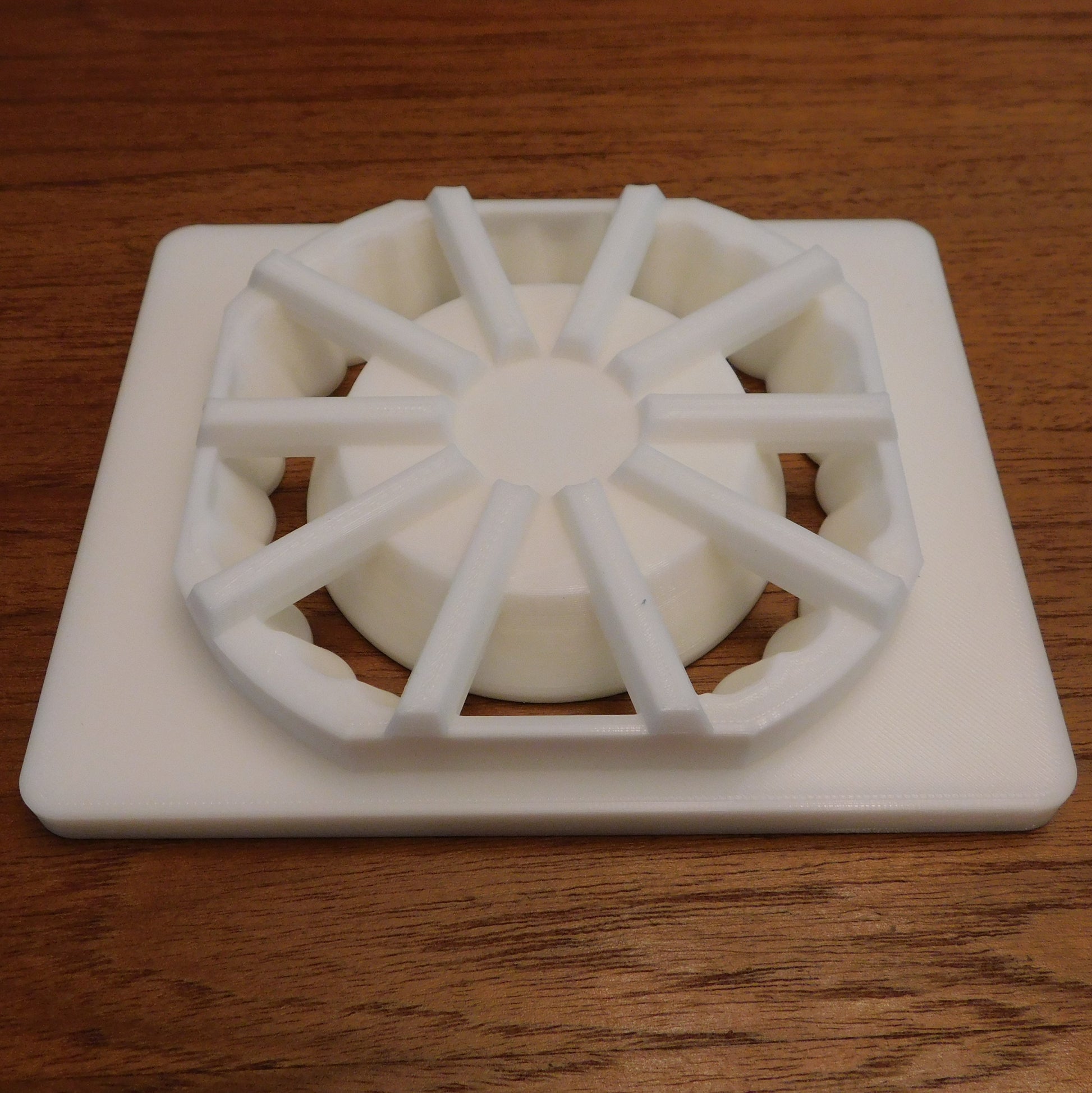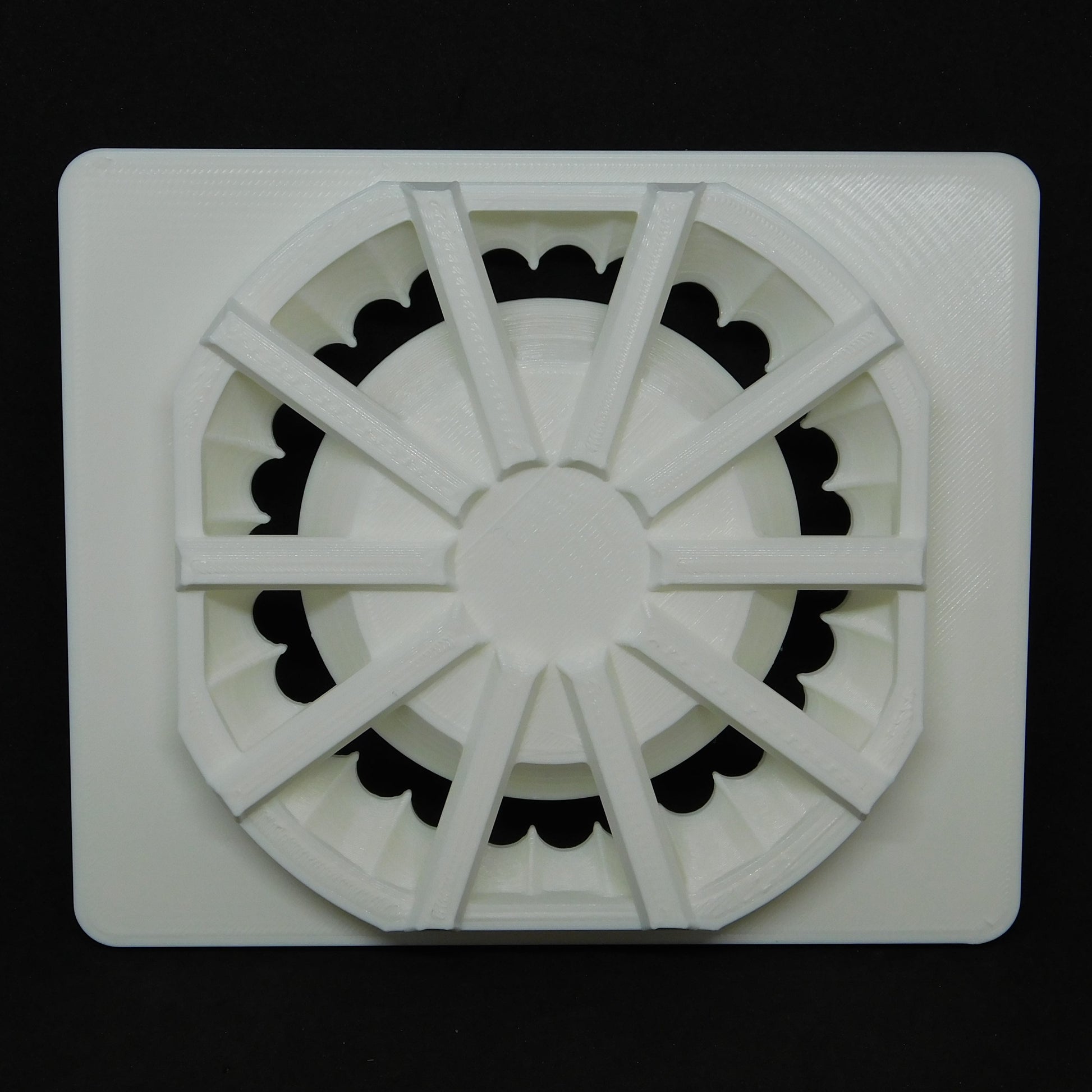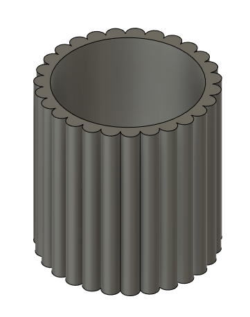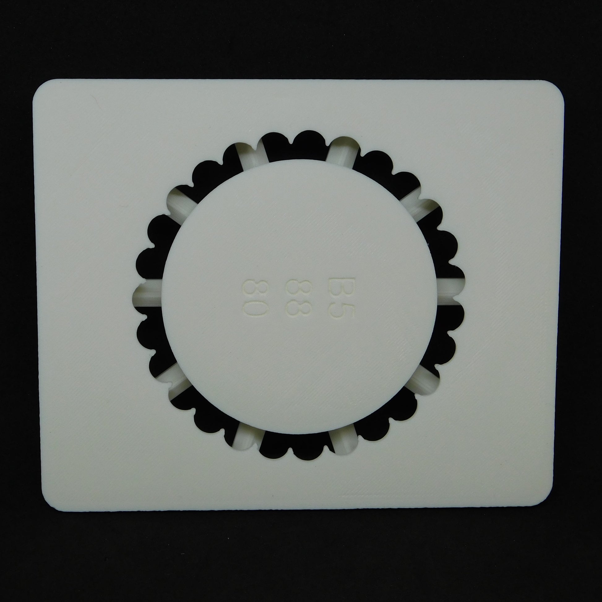 This die extrudes a scalloped shape. The inner shape is a smooth circle. It fits in 5" Bailey clay extruder.