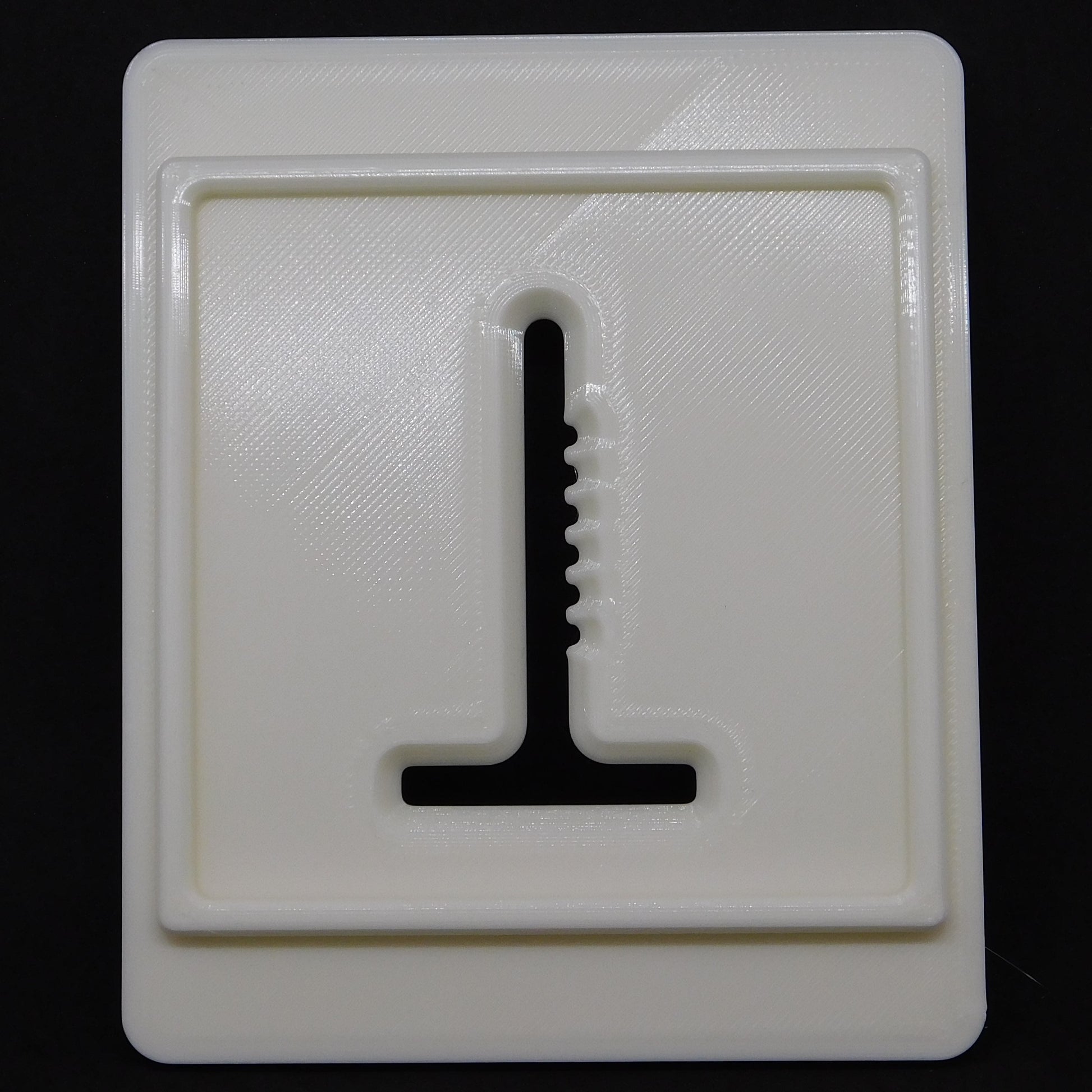 The tile has several features that might be of interest during glaze testing. On one side, a section of ridges tests how a glaze breaks across surfaces. The opposite side is smooth to see how the glaze flows down a straight wall. There is room below the ridges for a small stamp. The base is stable to stand in a kiln, but narrow enough to hang the tile on a wall, if you poke a small hole at the top.