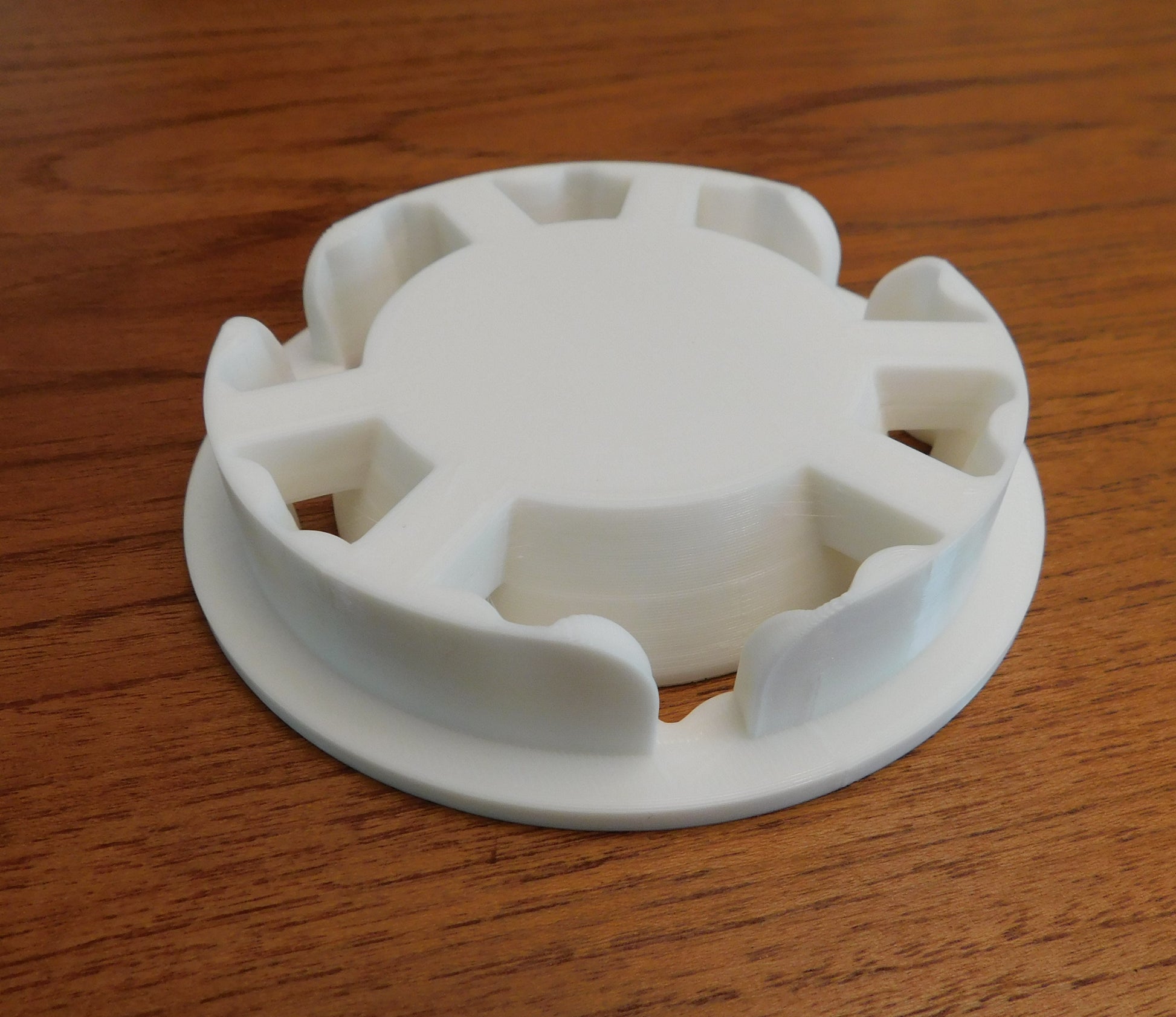 The die and cutter are 3D-printed using PLA filament. PLA is a plastic made from starch (not petrochemicals) and is compostable in industrial composters.