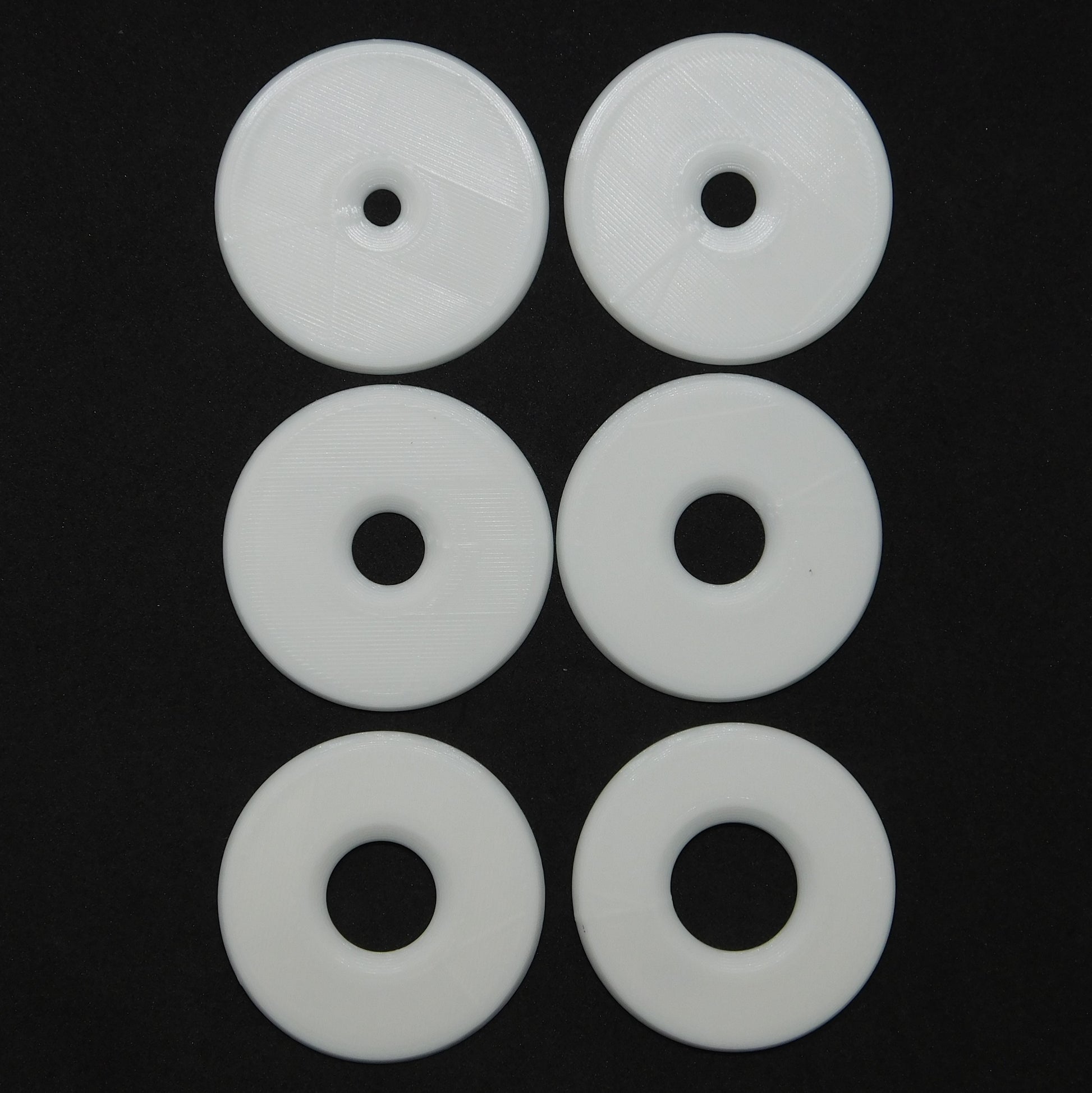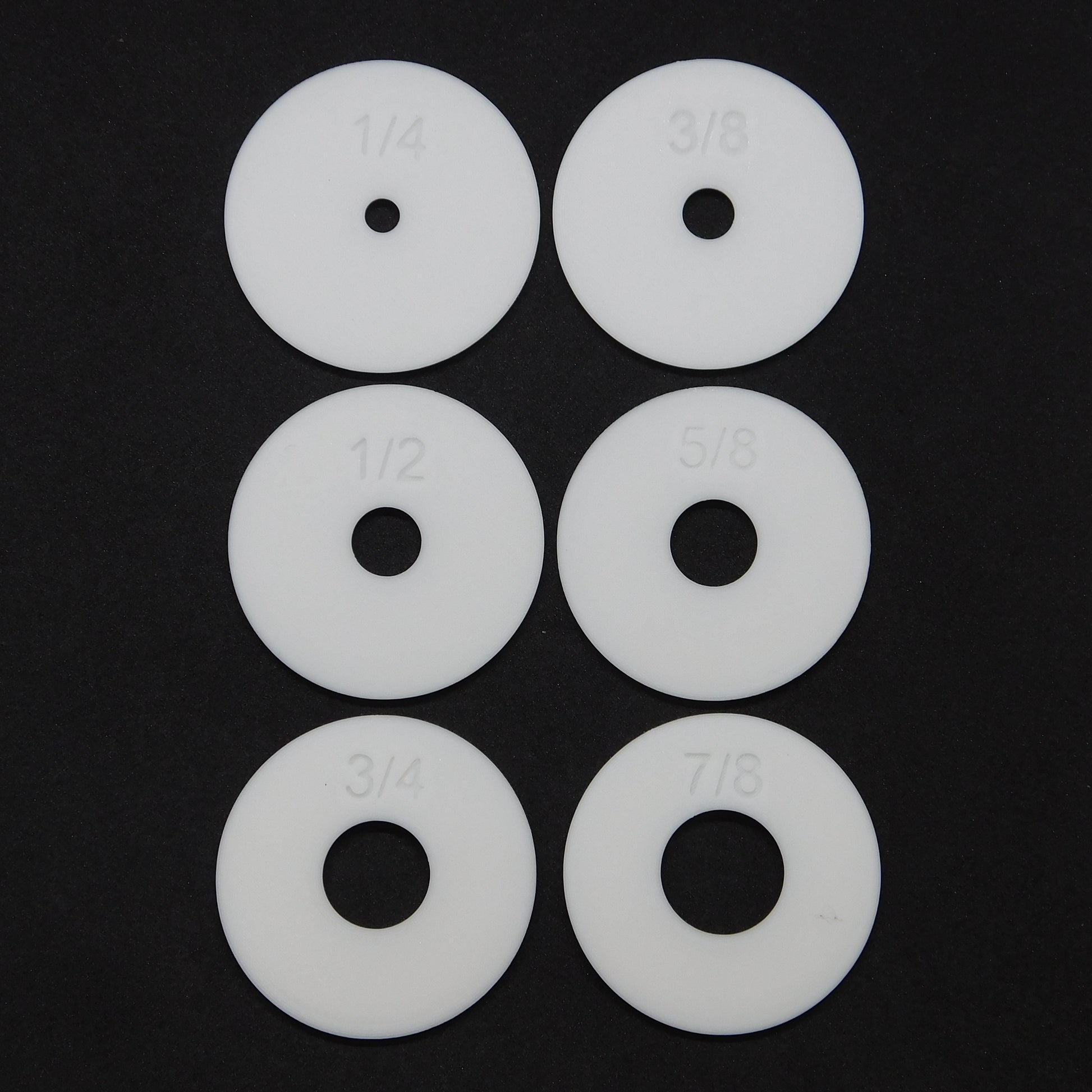 Each die extrudes a coil. The set of six dies includes diameters of 1/4", 3/8", 1/2", 5/8", 3/4", and 7/8". Each die fits in 2" handheld extruders, like the Scott Creek Super Duper Clay Gun.