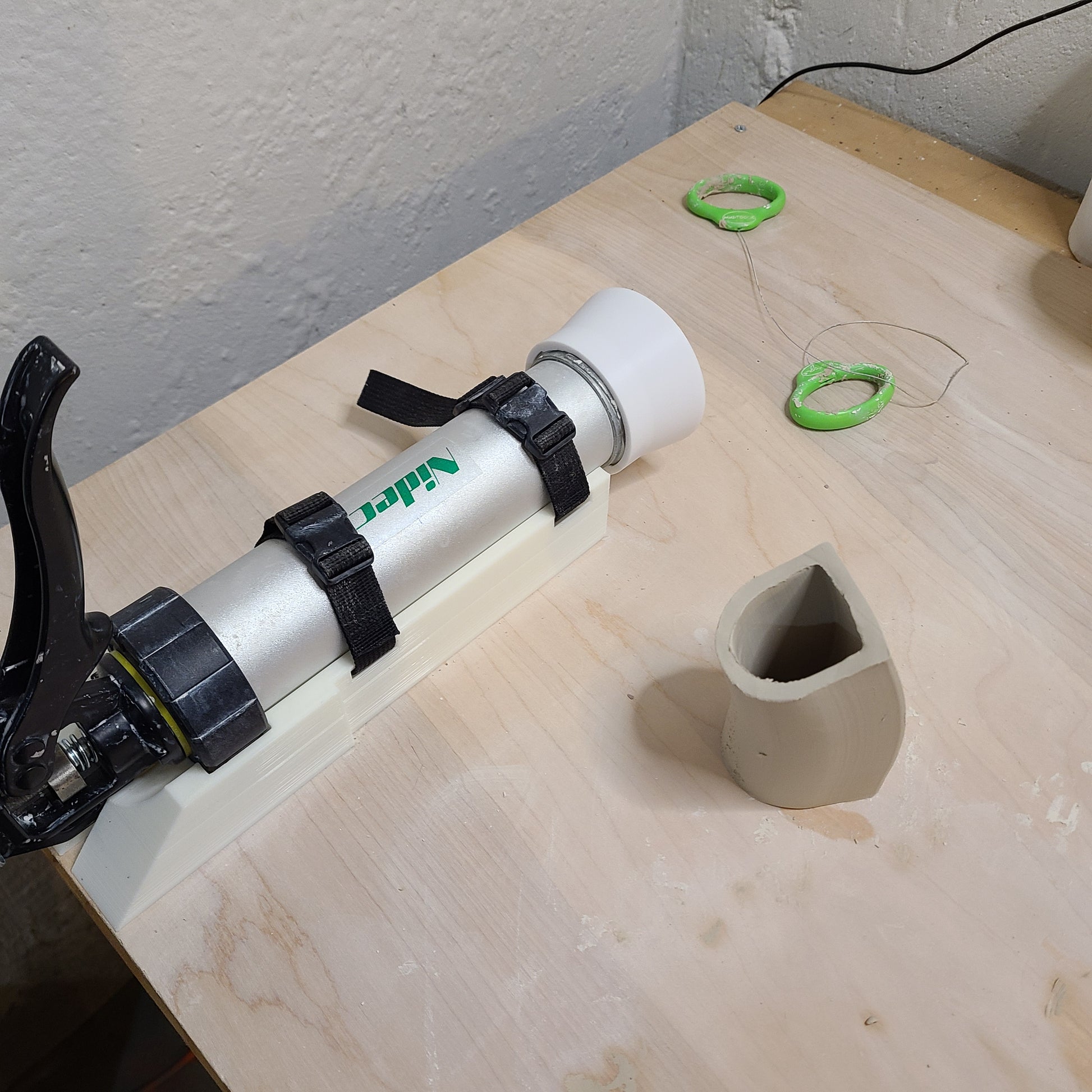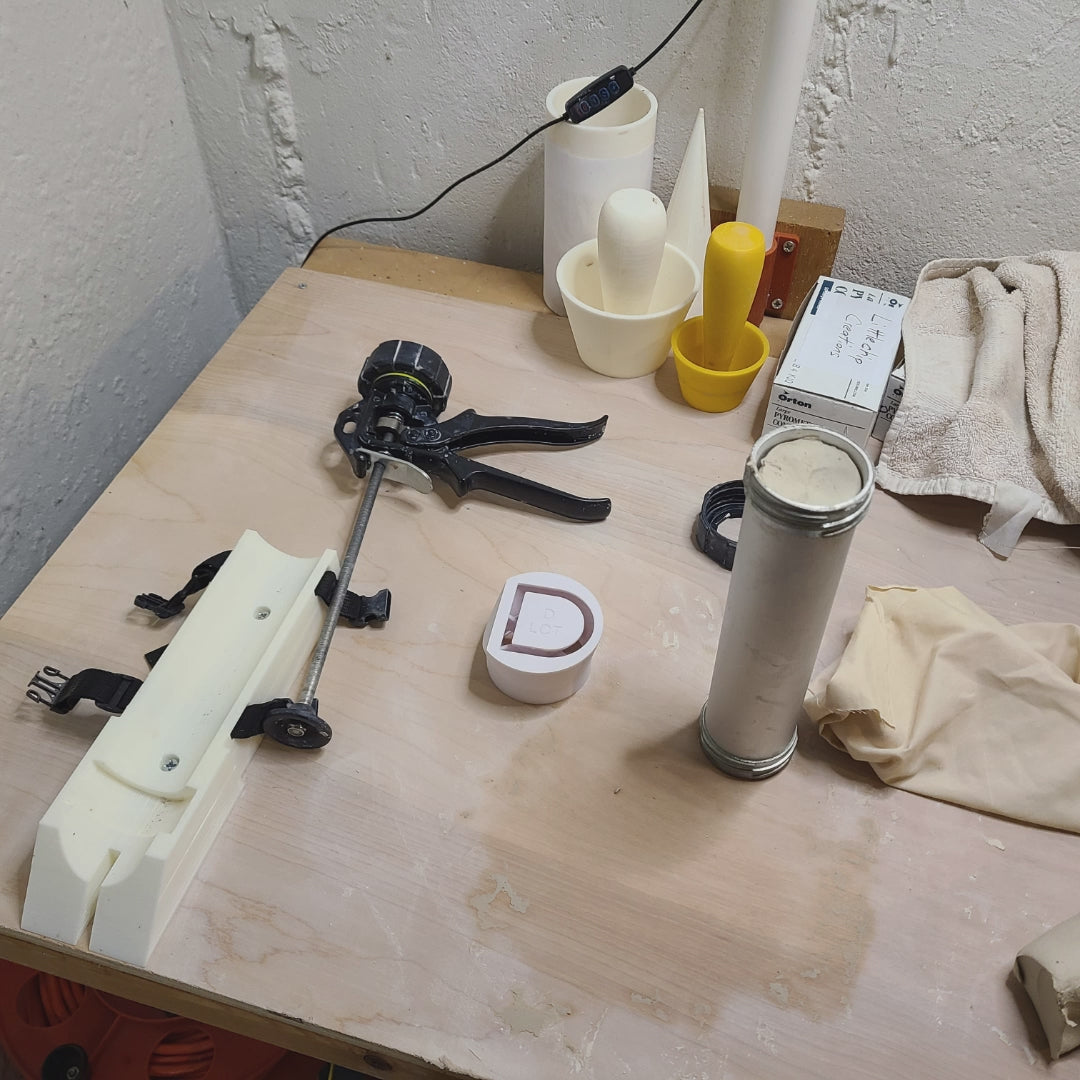 Many potters have a handheld extruder but use it only to make coils and handles. Here's a die that expands the range of what is possible to make with a handheld extruder.