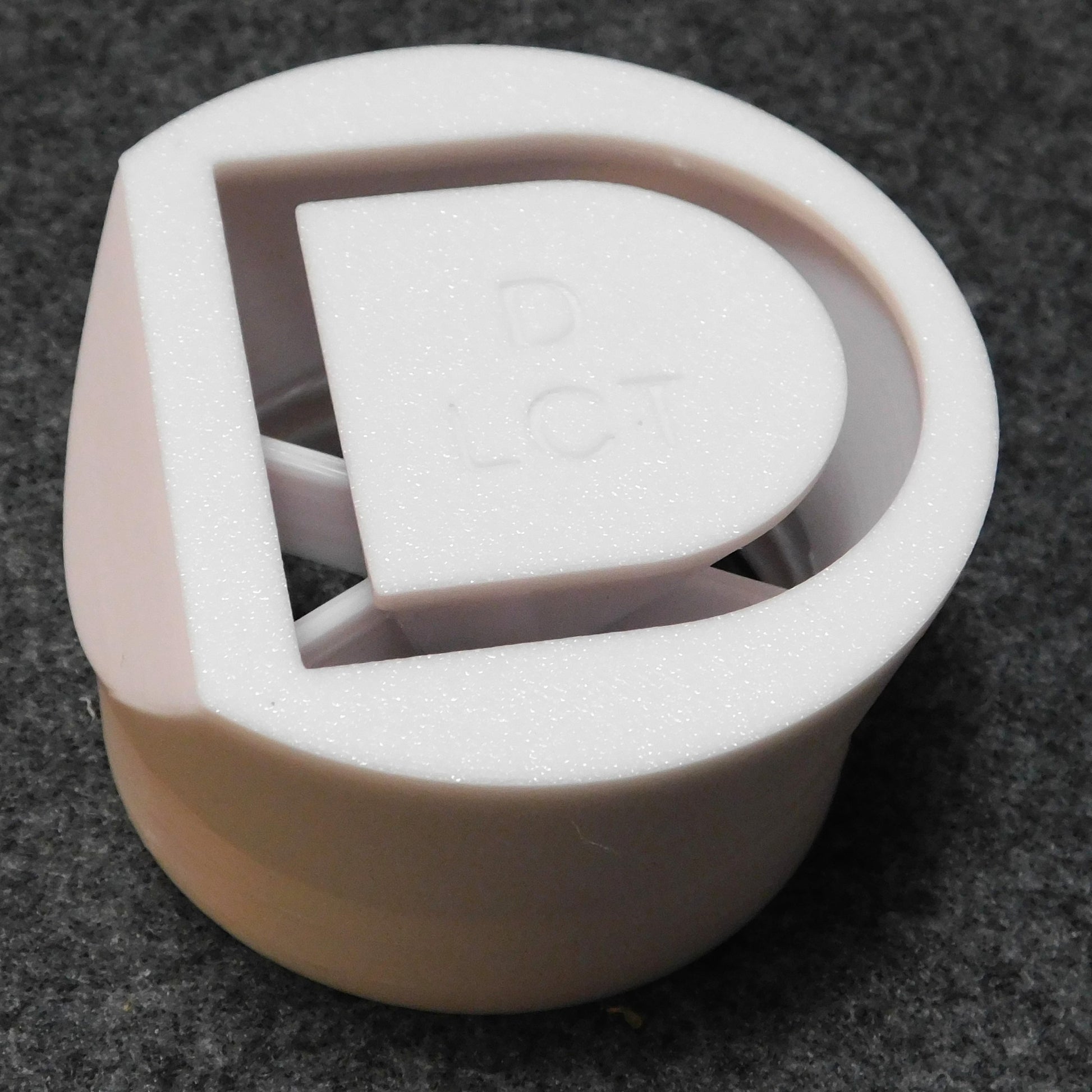 This die extrudes a hollow "D" shape. It can be used to make small wall vases or ... whatever you imagine. The die screws onto the extruder in place of the endcap.