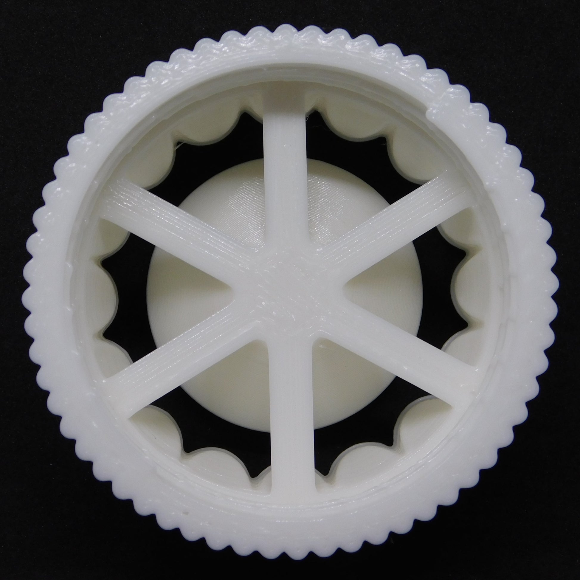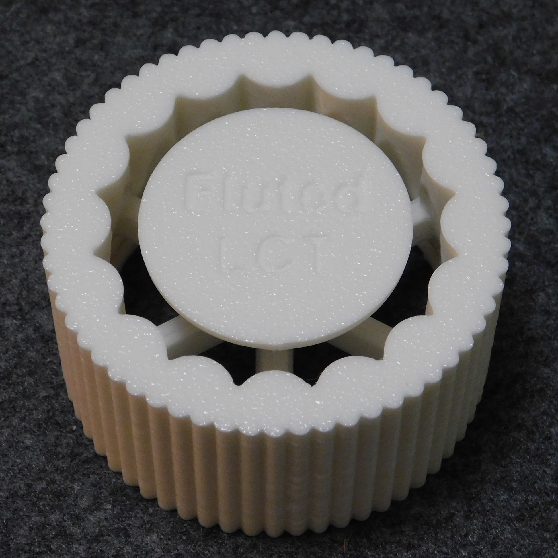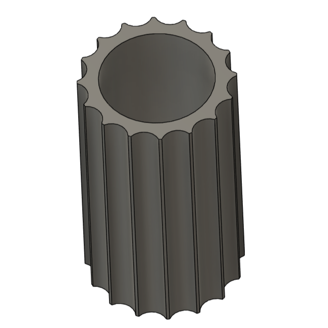 This die extrudes a fluted hollow shape. It can be use to make bud vases, desk organizers, or ... whatever you imagine. The die screws onto the extruder in place of the endcap.