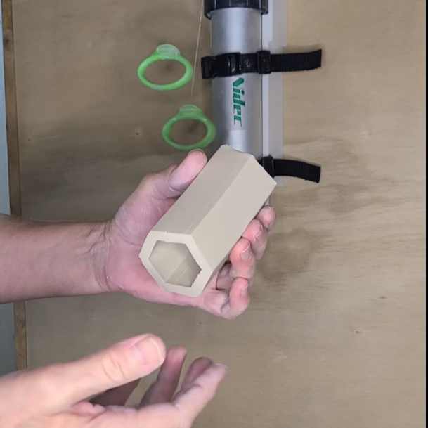 This die extrudes a hollow square shape. It can be use to make bud vases, desk organizers, or ... whatever you imagine. The dies screws onto the extruder in place of the endcap.