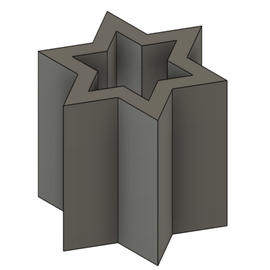 The extruded shape is a star that is 2 1/4" point-to-point with 5mm walls.