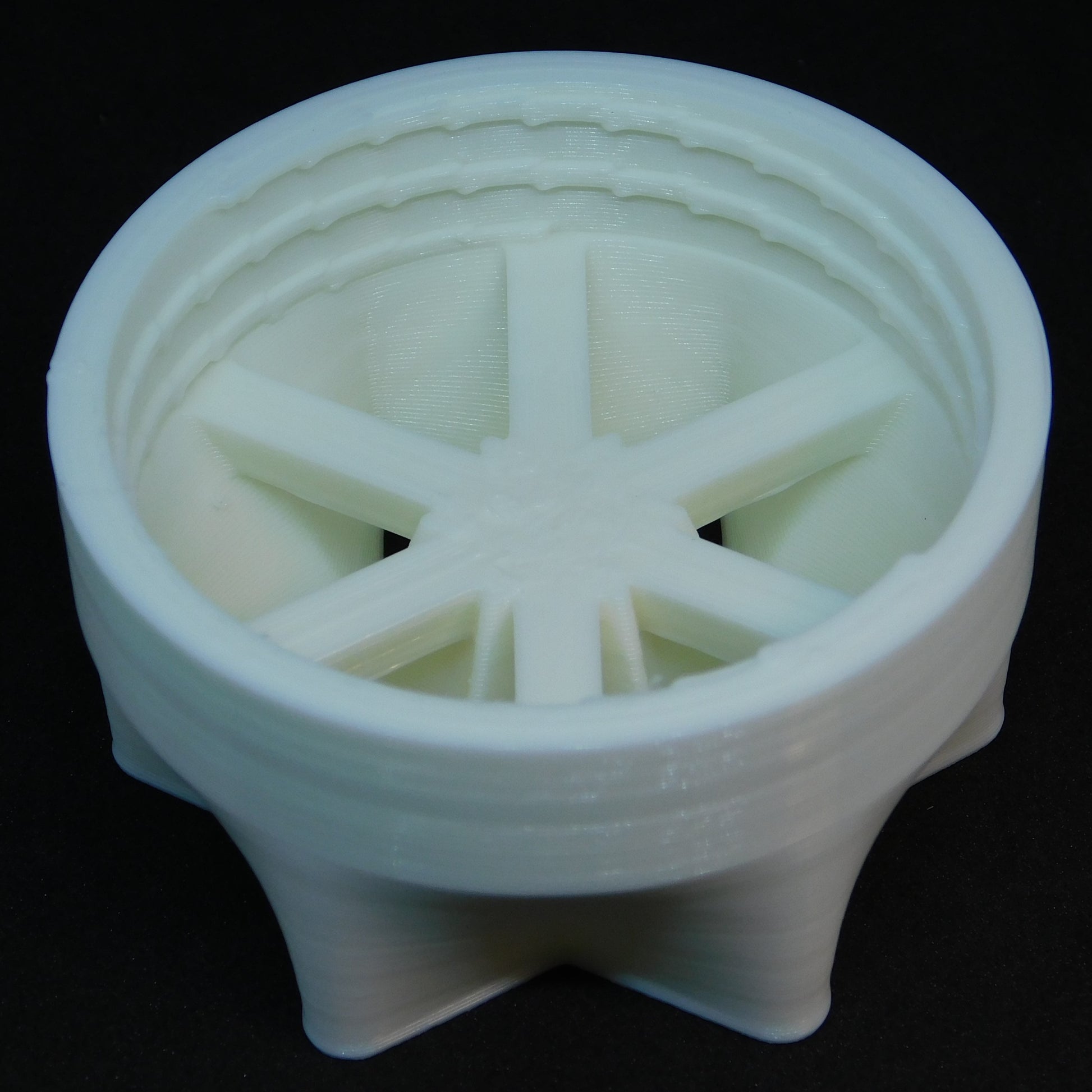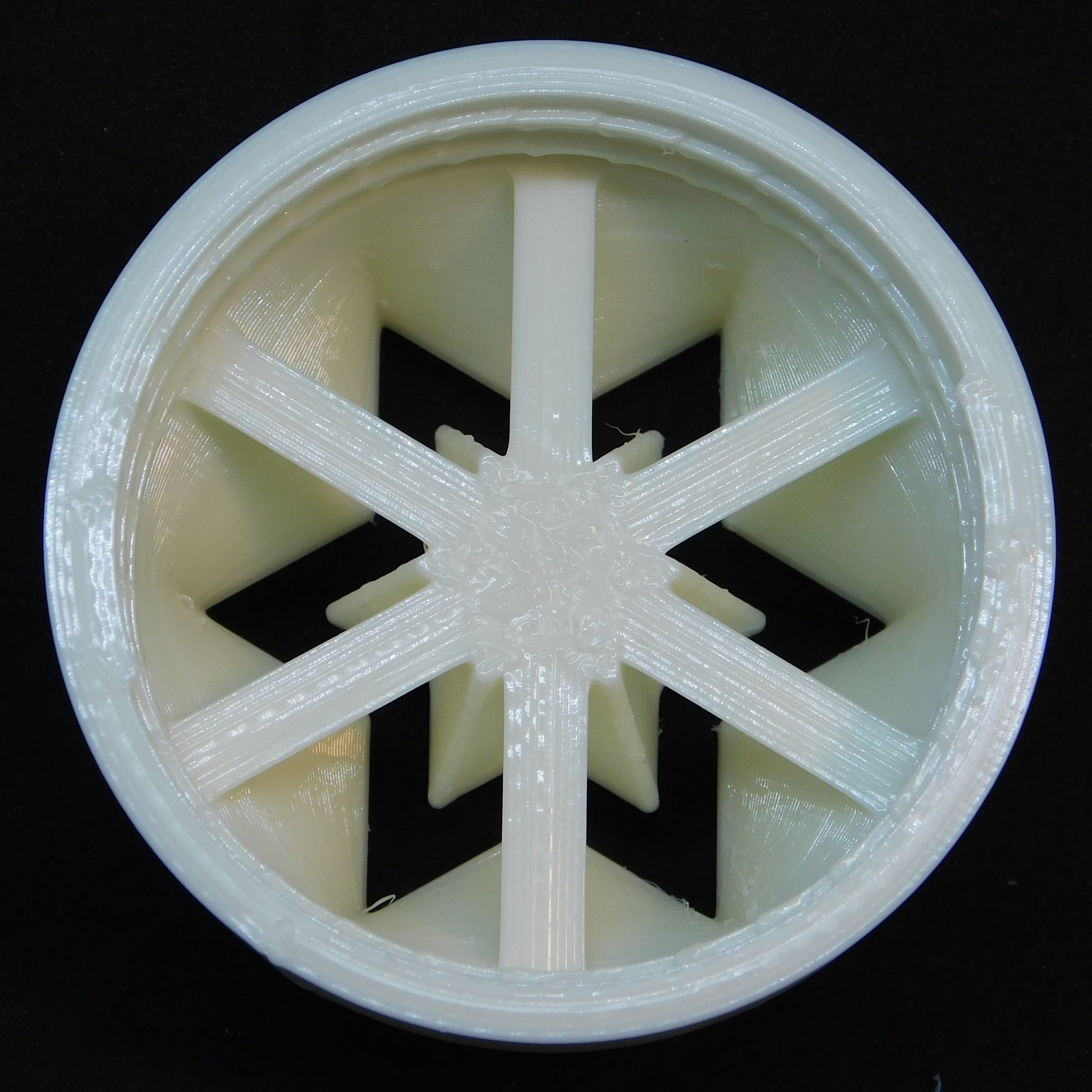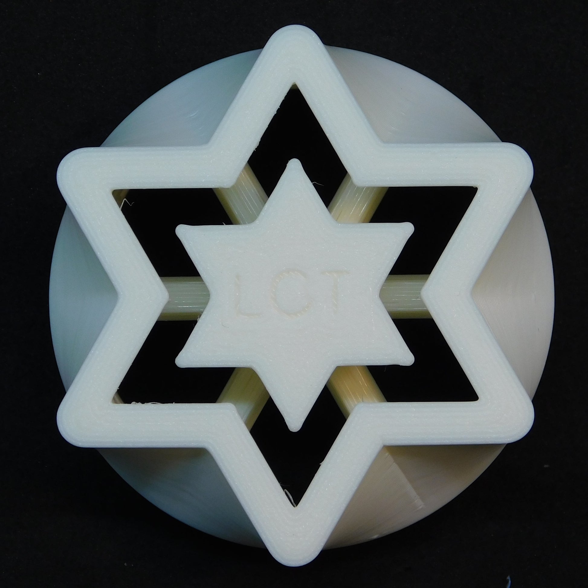 This die extrudes a hollow shape that makes a six-pointed star. The dies screws onto the extruder in place of the endcap.