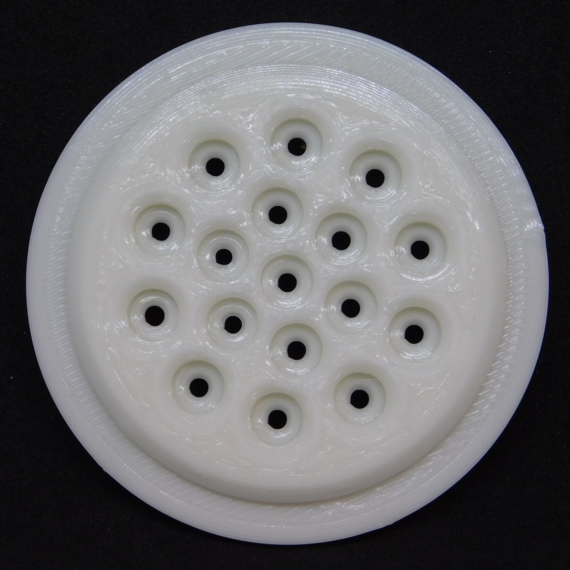 This die extrudes very thin spaghetti shapes, approximately 2mm in diameter. It can be useful, for example, for sculpting flower centers. It fits in 2" handheld extruders, including brands like Scott Creek, Shimpo / Nidec, and Kemper.