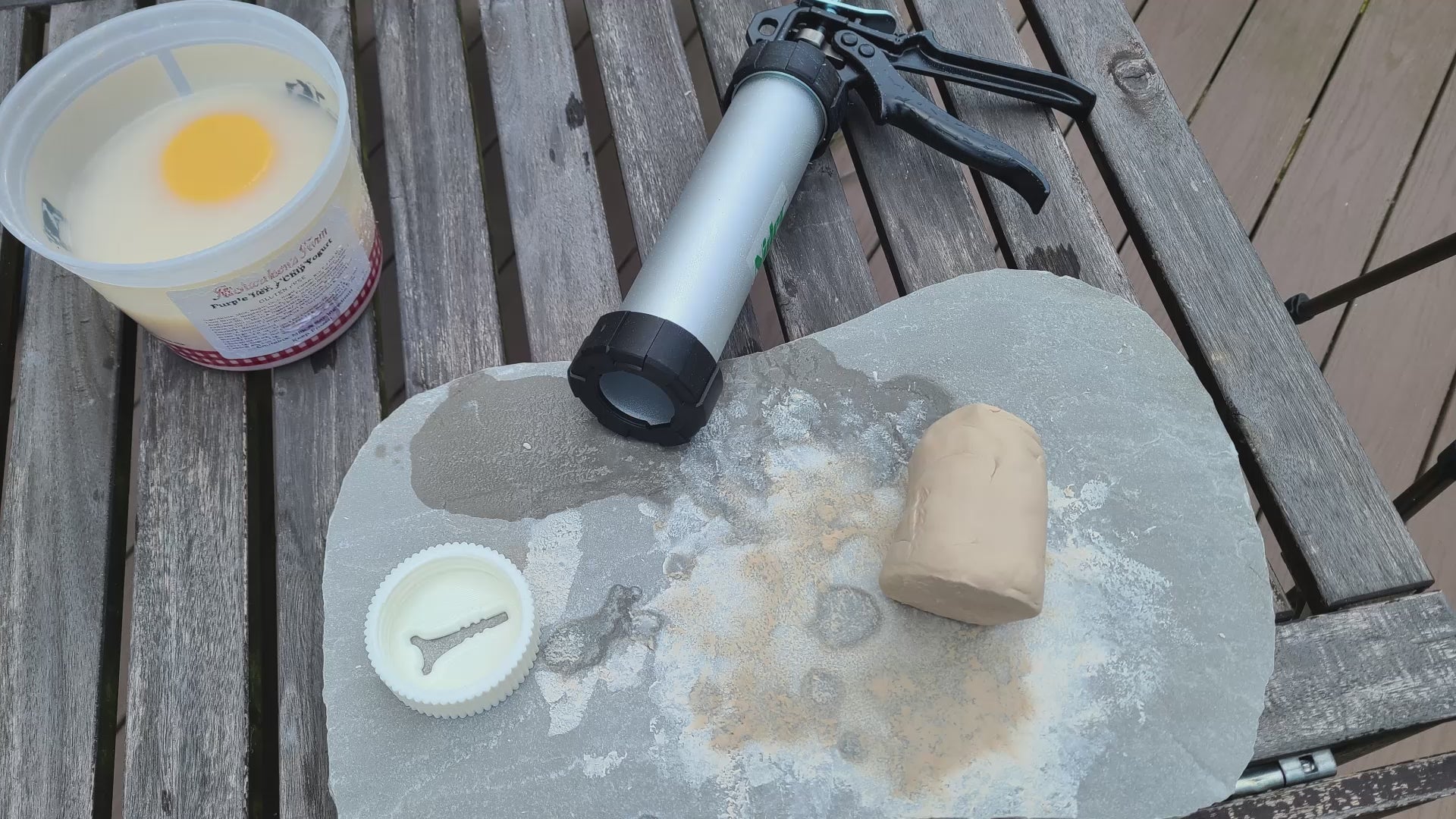The die and cutter are 3D-printed using PLA filament. PLA is a plastic made from starch (not petrochemicals) and is compostable in industrial composters.