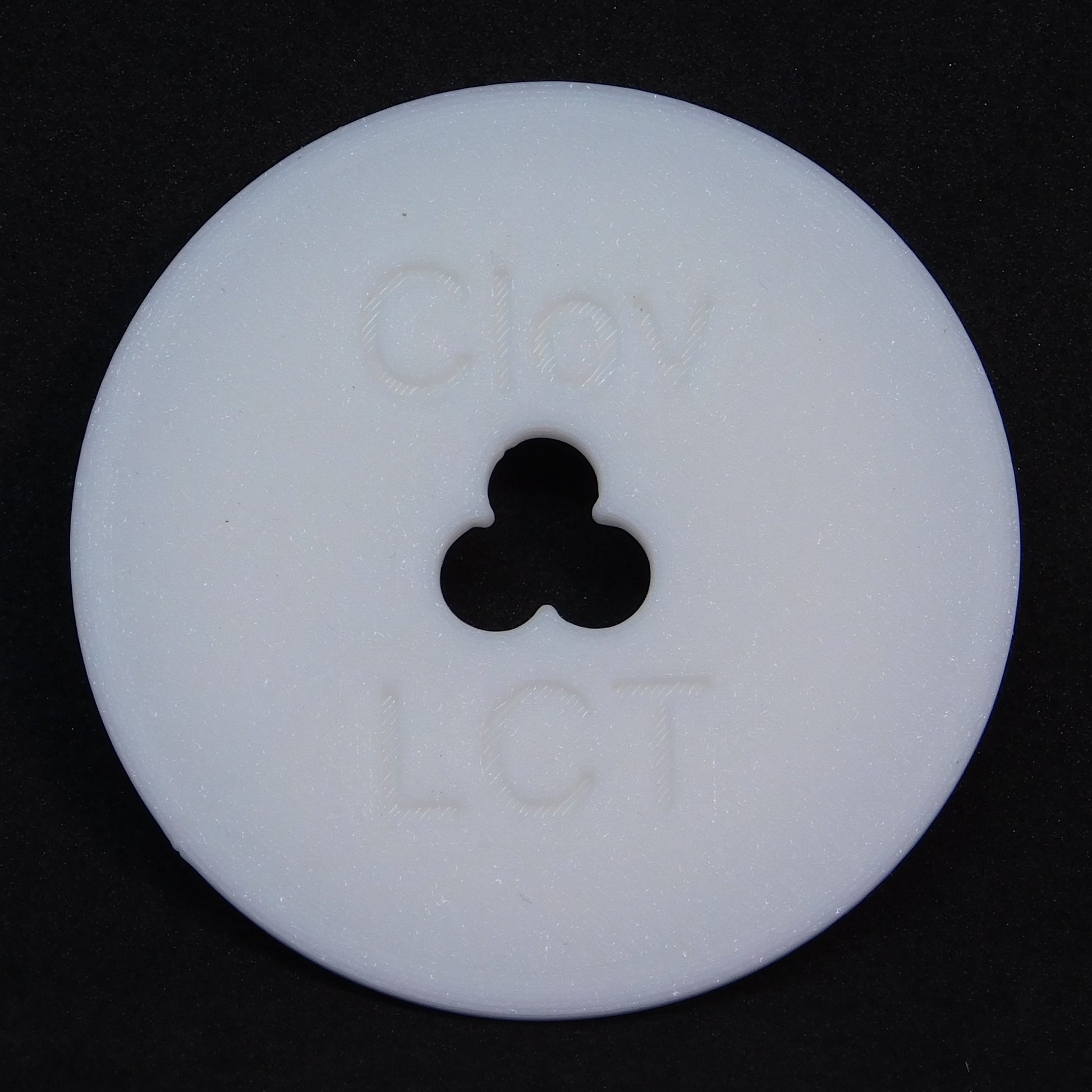 This die extrudes a three-leaf clover shape that can be used as a foot for your pots. It fits in 2" handheld extruders, including brands like Scott Creek, Shimpo / Nidec, and Kemper.