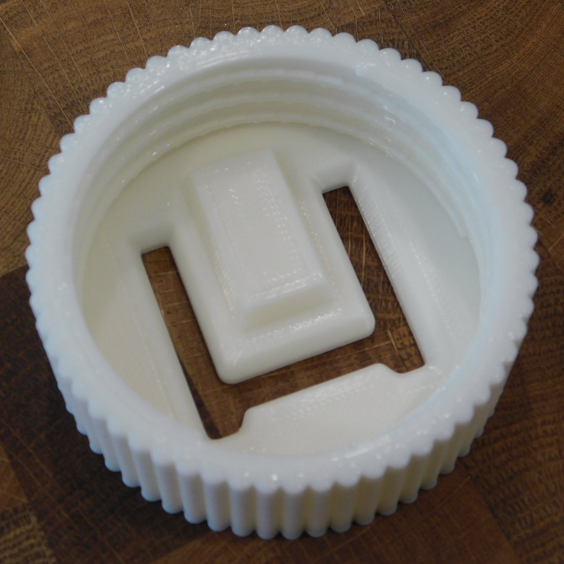 The die and cutter are 3D-printed using PLA filament. PLA is a plastic made from starch (not petrochemicals) and is compostable in industrial composters.