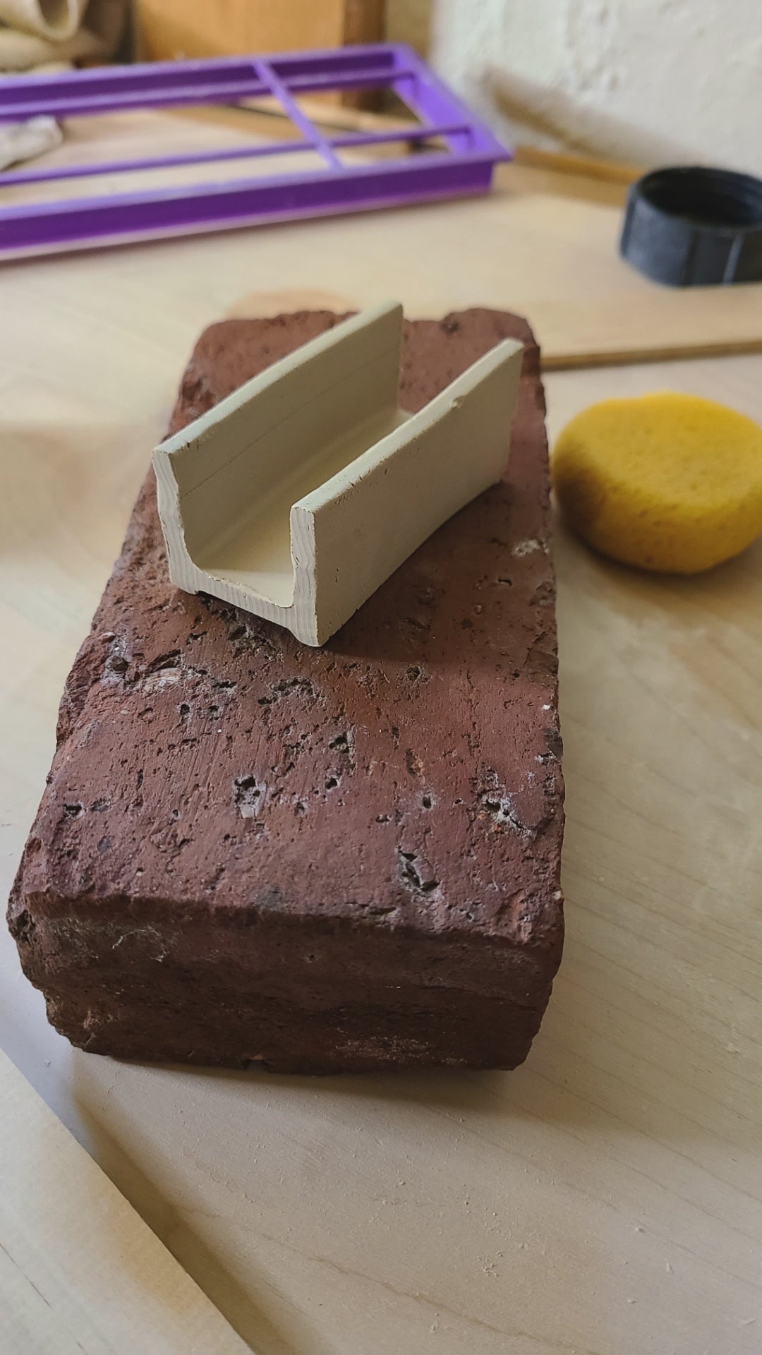 This die extrudes a trench shape that could be useful to make business card holders or perhaps kitchen sponge holders.