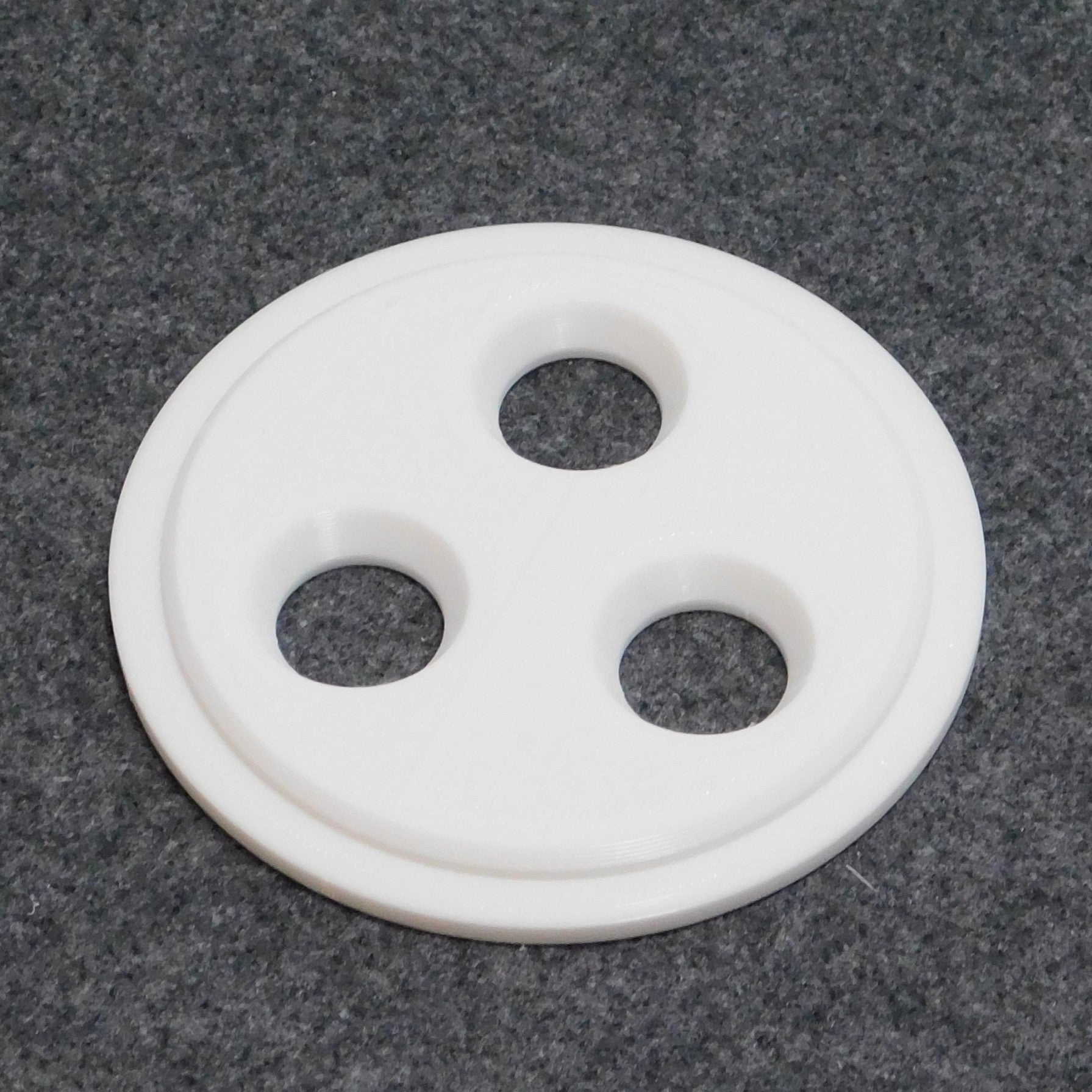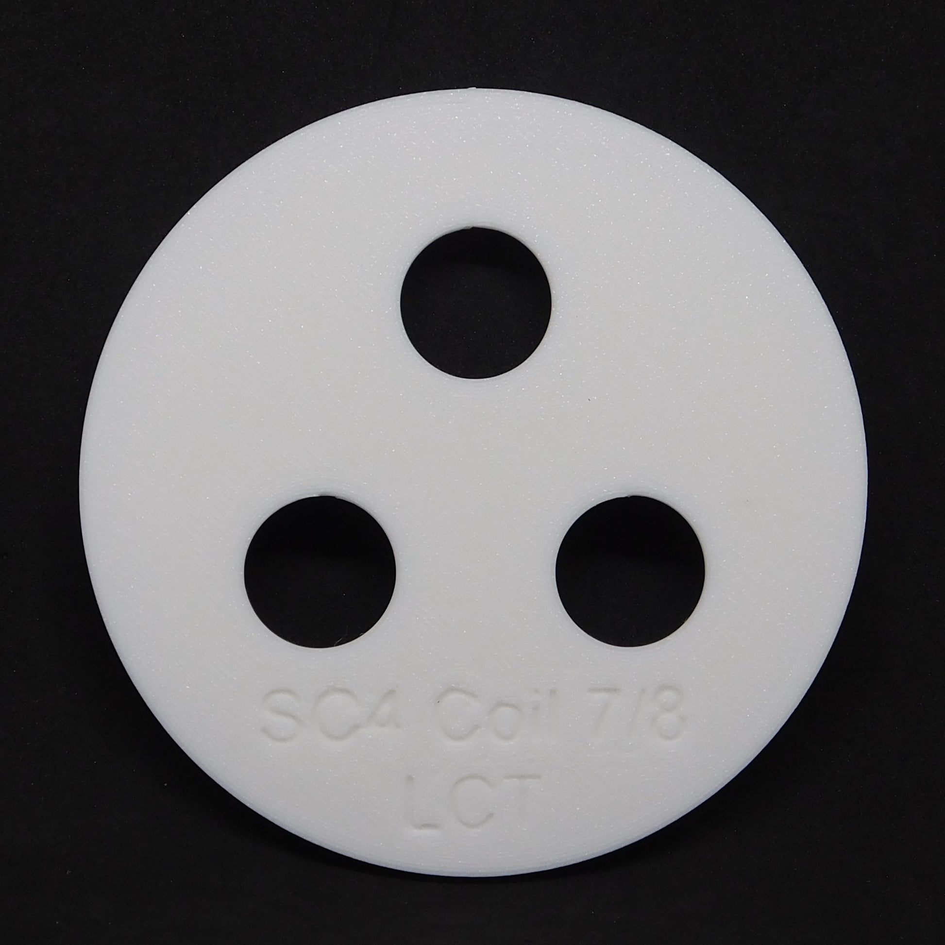 This die extrudes three coil shapes each 7/8" in diameter. It fits in Scott Creek 4" square clay extruders.