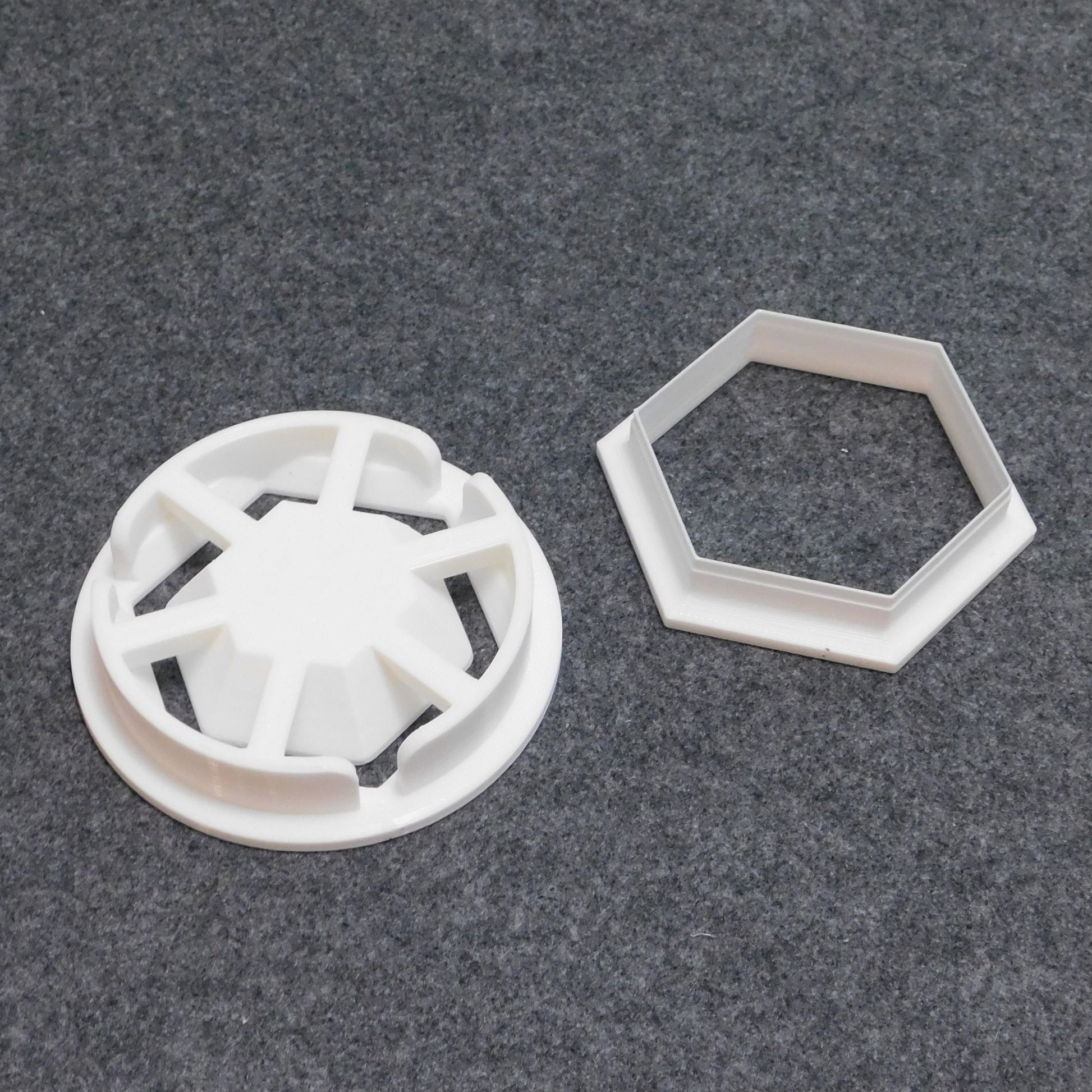 This die extrudes a hexagon shape with a 5mm wall. The die is compatible with 4" round Scott Creek clay extruders.
