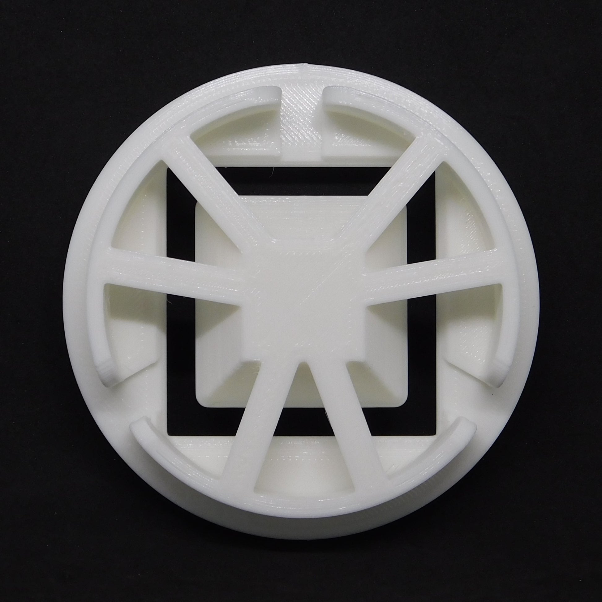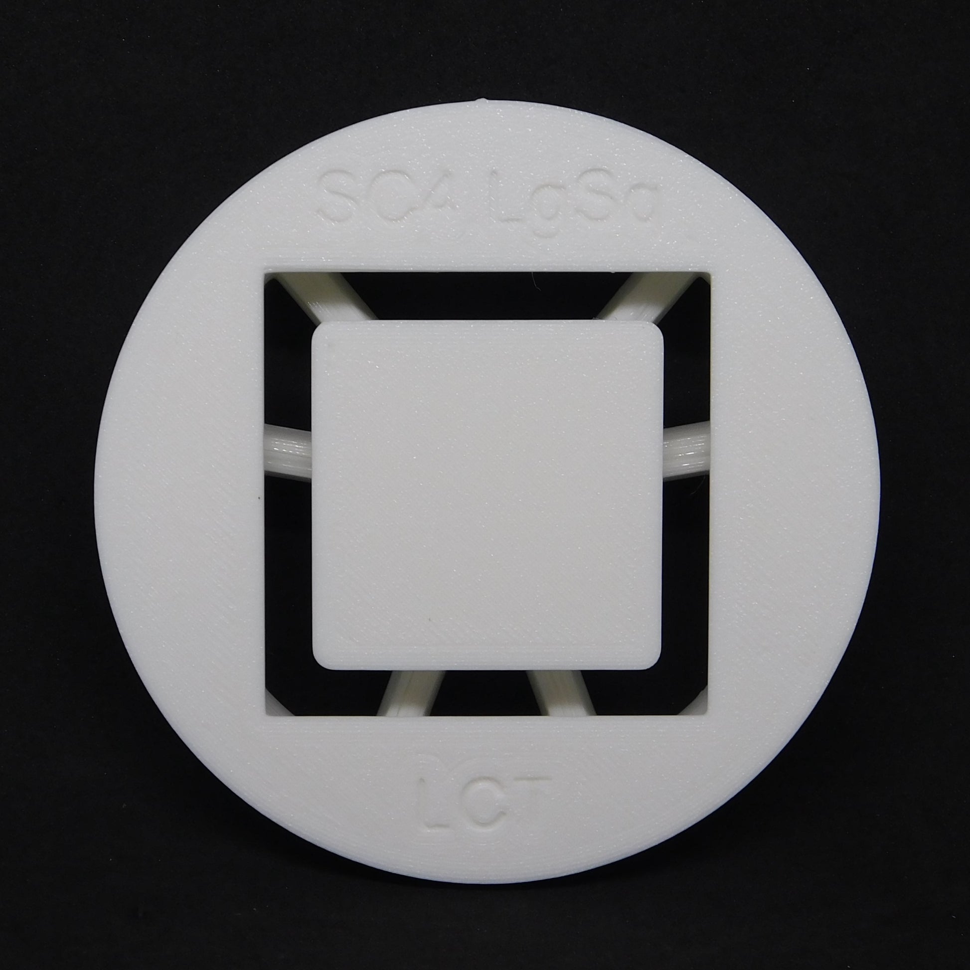 This die extrudes a hollow square shape. The die is compatible with 4" round Scott Creek clay extruders.