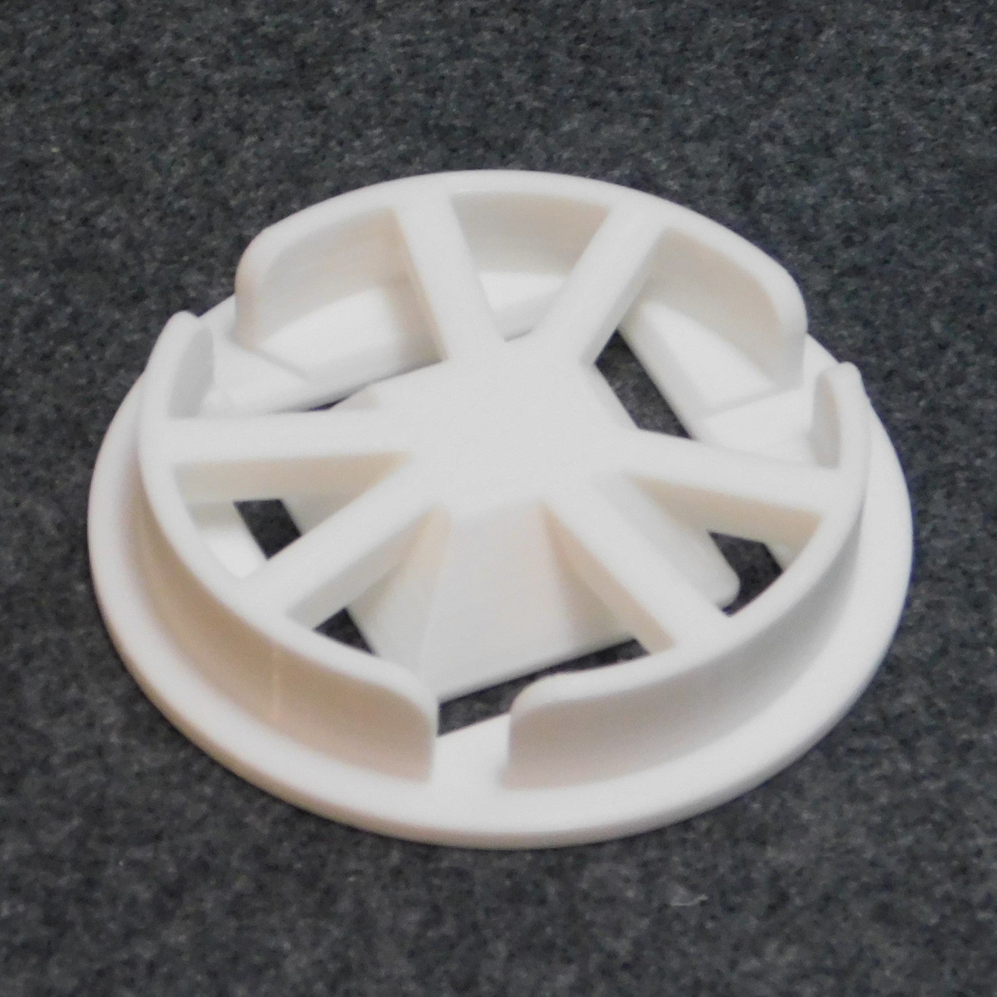 The die and cutter are 3D-printed using PLA filament. PLA is a plastic made from starch (not petrochemicals) and is compostable in industrial composters.