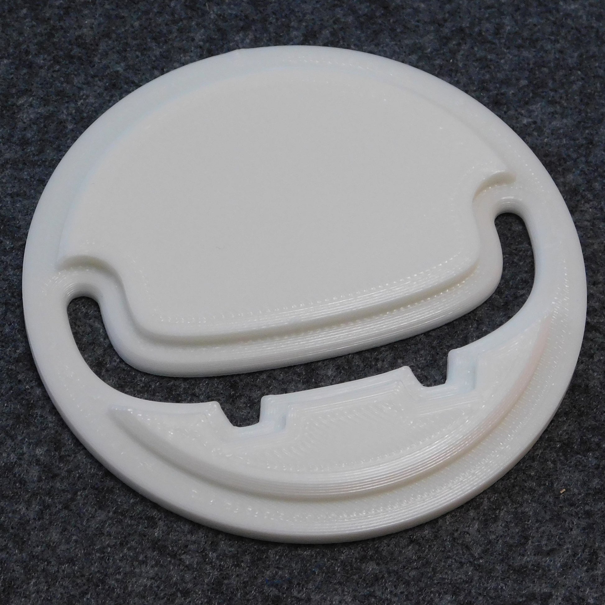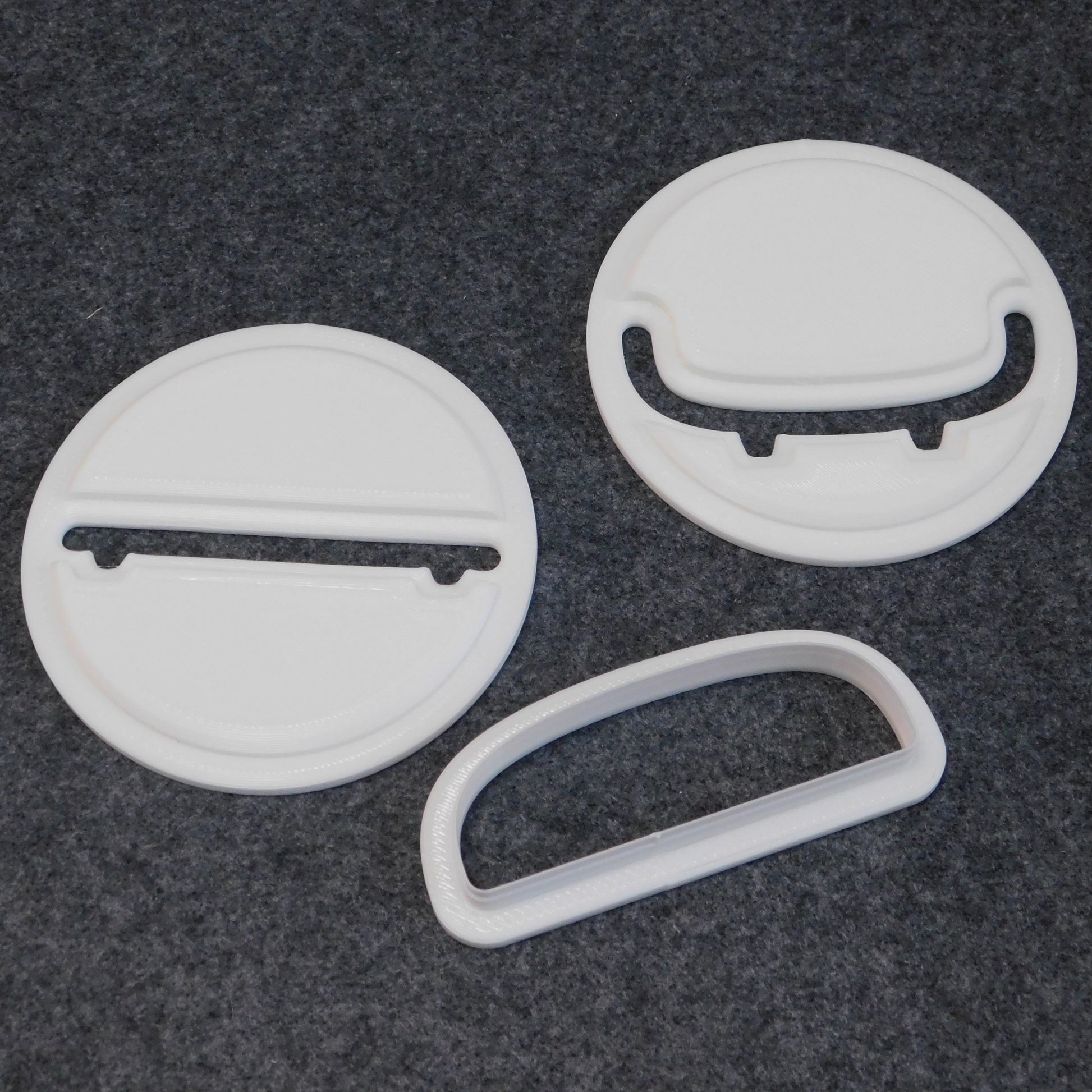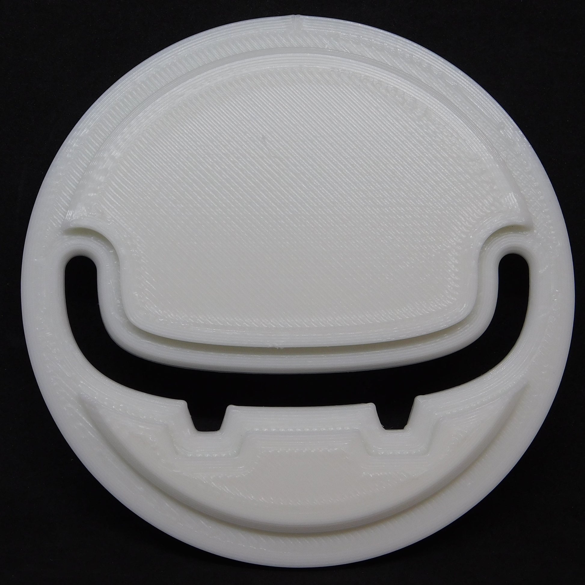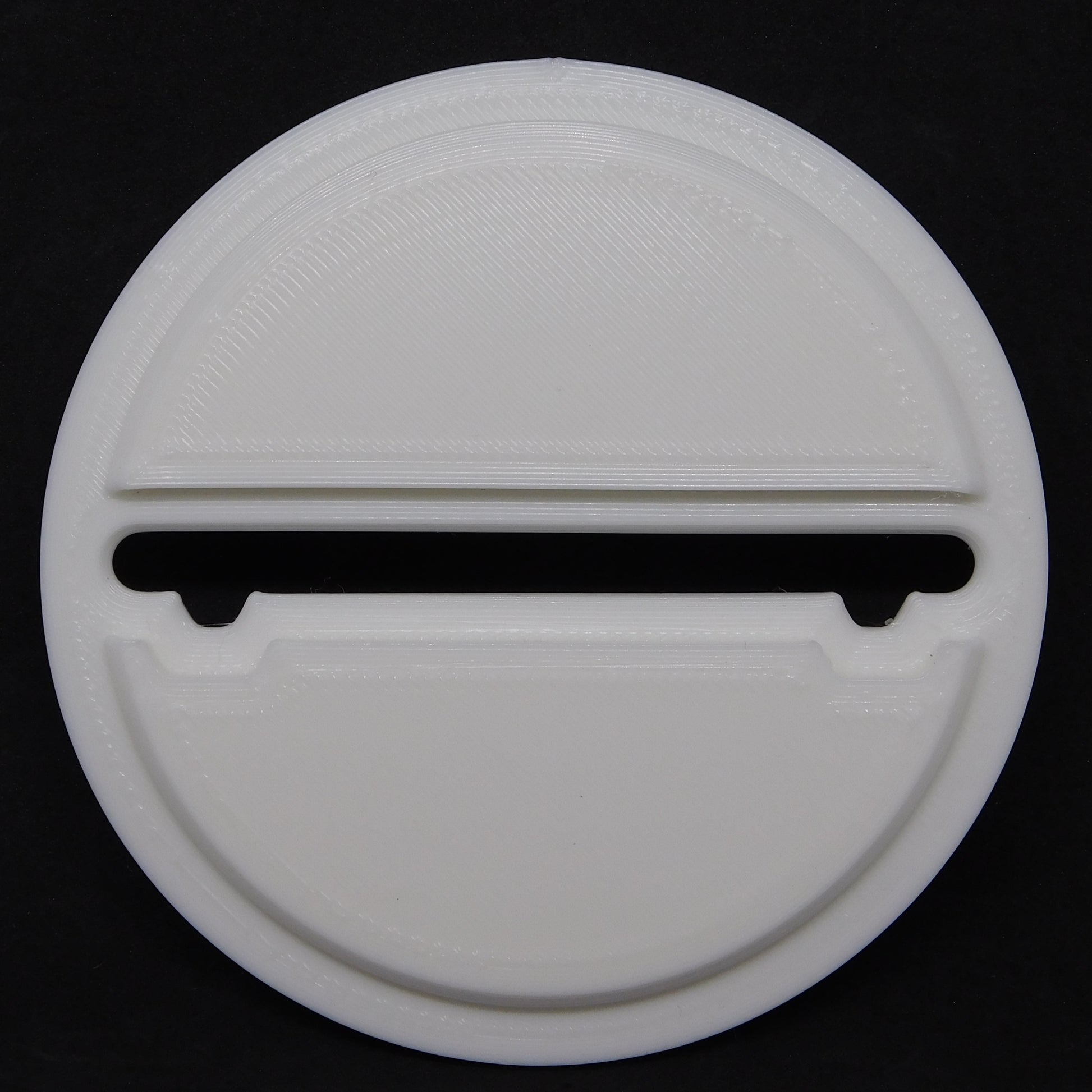The die and cutter are 3D-printed using PLA filament. PLA is a plastic made from starch (not petrochemicals) and is compostable in industrial composters.