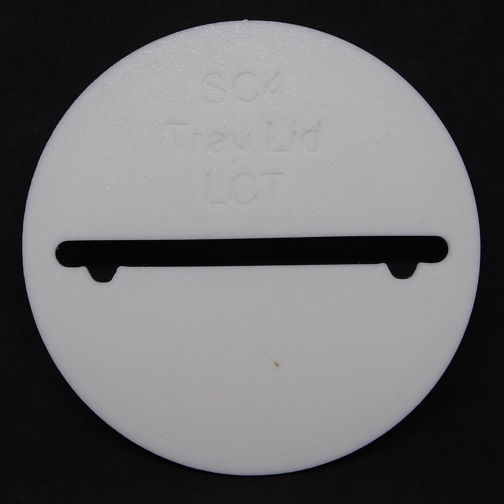This set of dies extrudes a small tray and matching lid. The tray is 3 3/4" wide and 1 1/2" tall. The die fits in Scott Creek 4" round clay extruders. The end cutter cuts a shape that matches the ends of the tray.