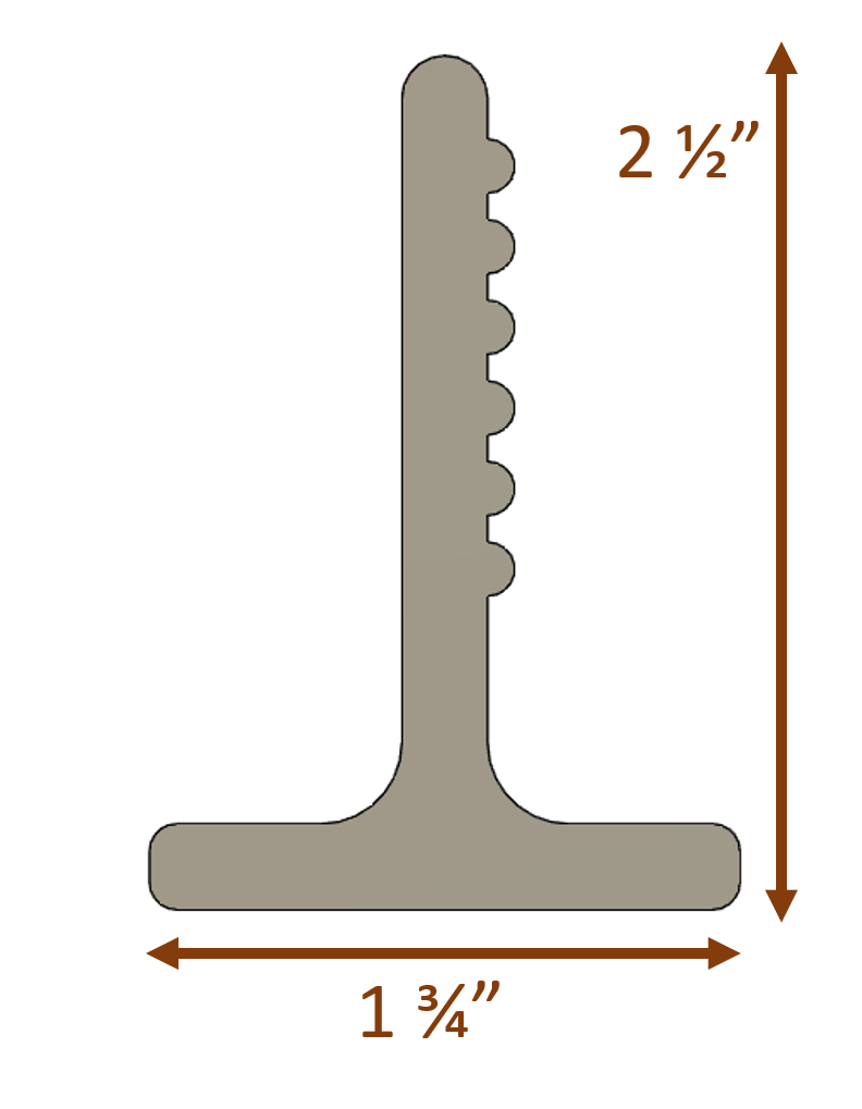 Extrusion dimensions:The overall height of the tile extrusion is 2 1/2" tall and the base is 1 3/4" wide. The overall thickness of the tile is ~1/4". The goal was to be sturdy but minimize the clay used.