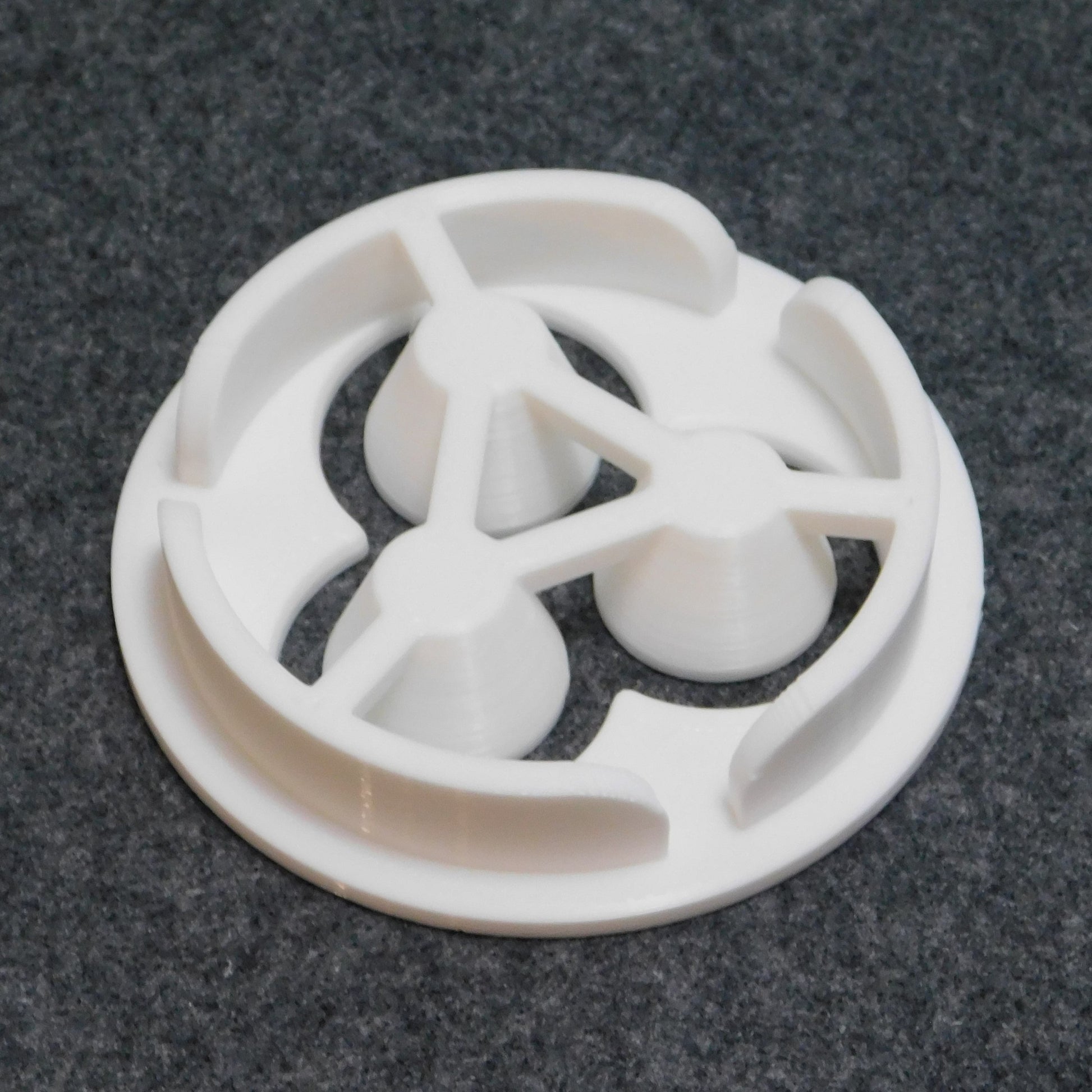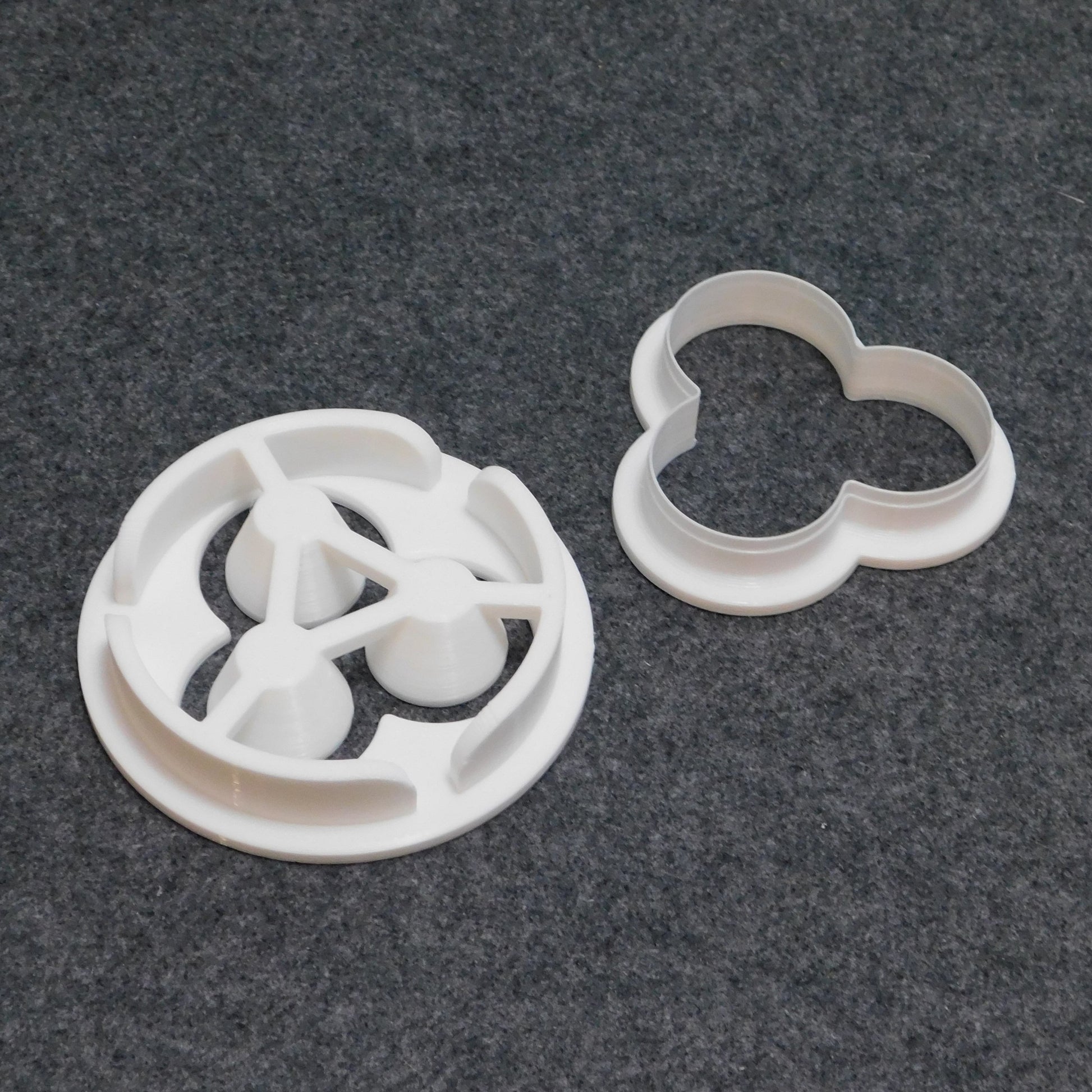 The die and cutter are 3D-printed using PLA filament. PLA is a plastic made from starch (not petrochemicals) and is compostable in industrial composters.