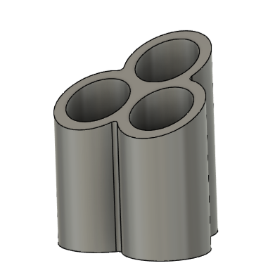 This die extrudes three conjoined circles, each with a 5mm wall. It could make a great vase or desk organizer, especially when cut at a slant. The die is compatible with 4" round Scott Creek clay extruders.