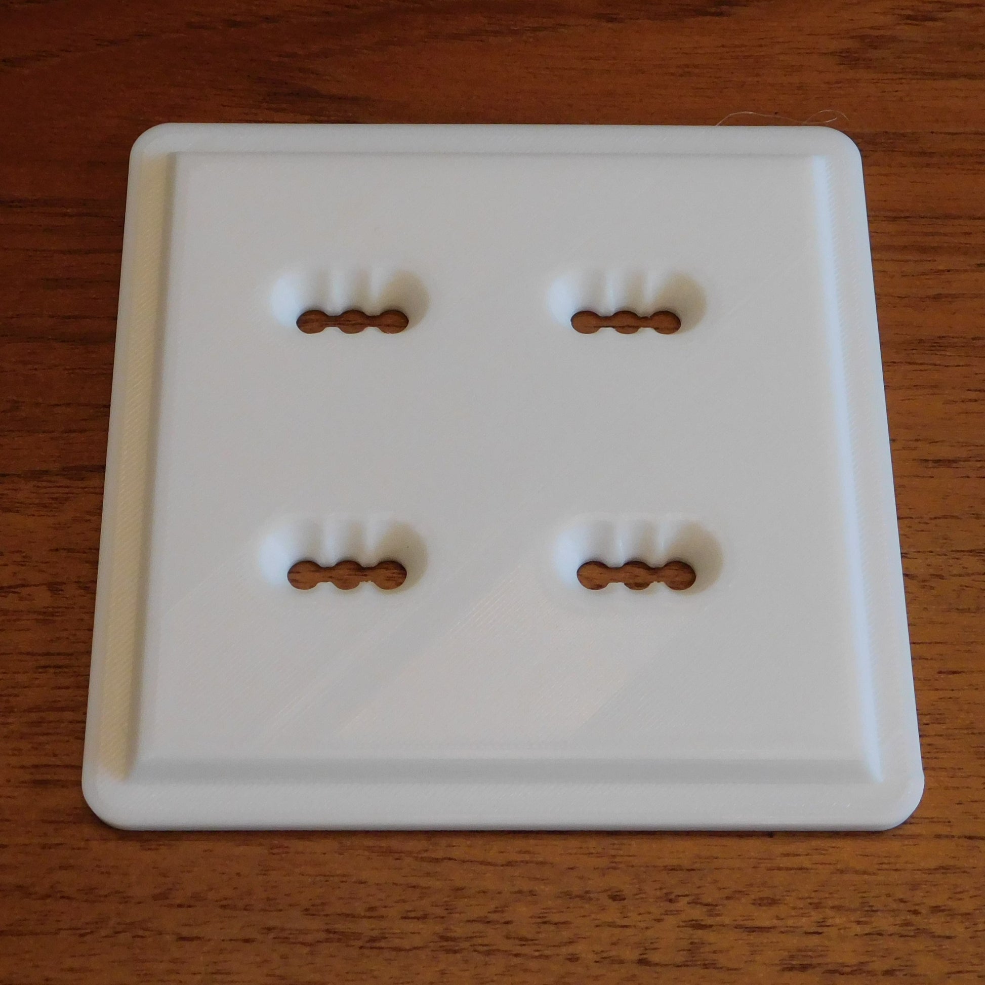 The die and cutter are 3D-printed using PLA filament. PLA is a plastic made from starch (not petrochemicals) and is compostable in industrial composters.