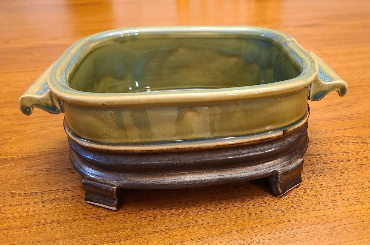This die extrudes three parts of a casserole dish: the walls, handles, and feet. The dish wall height is 3" (before firing).