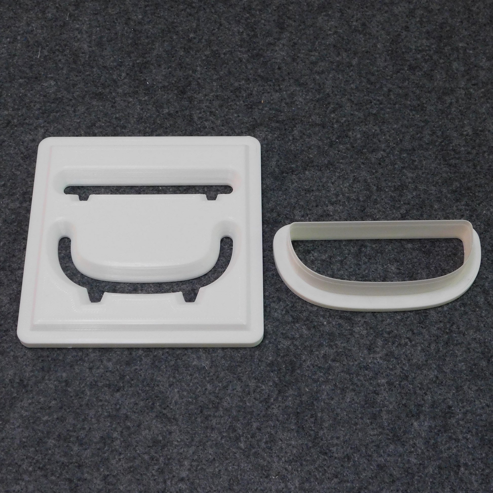 This die extrudes a two shapes simultaneously -- a small tray and matching lid. It fits in 5" square Scott Creek clay extruders.