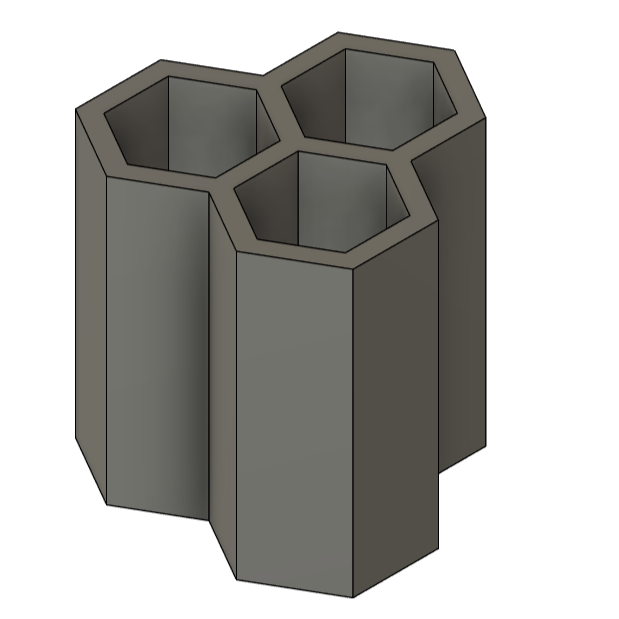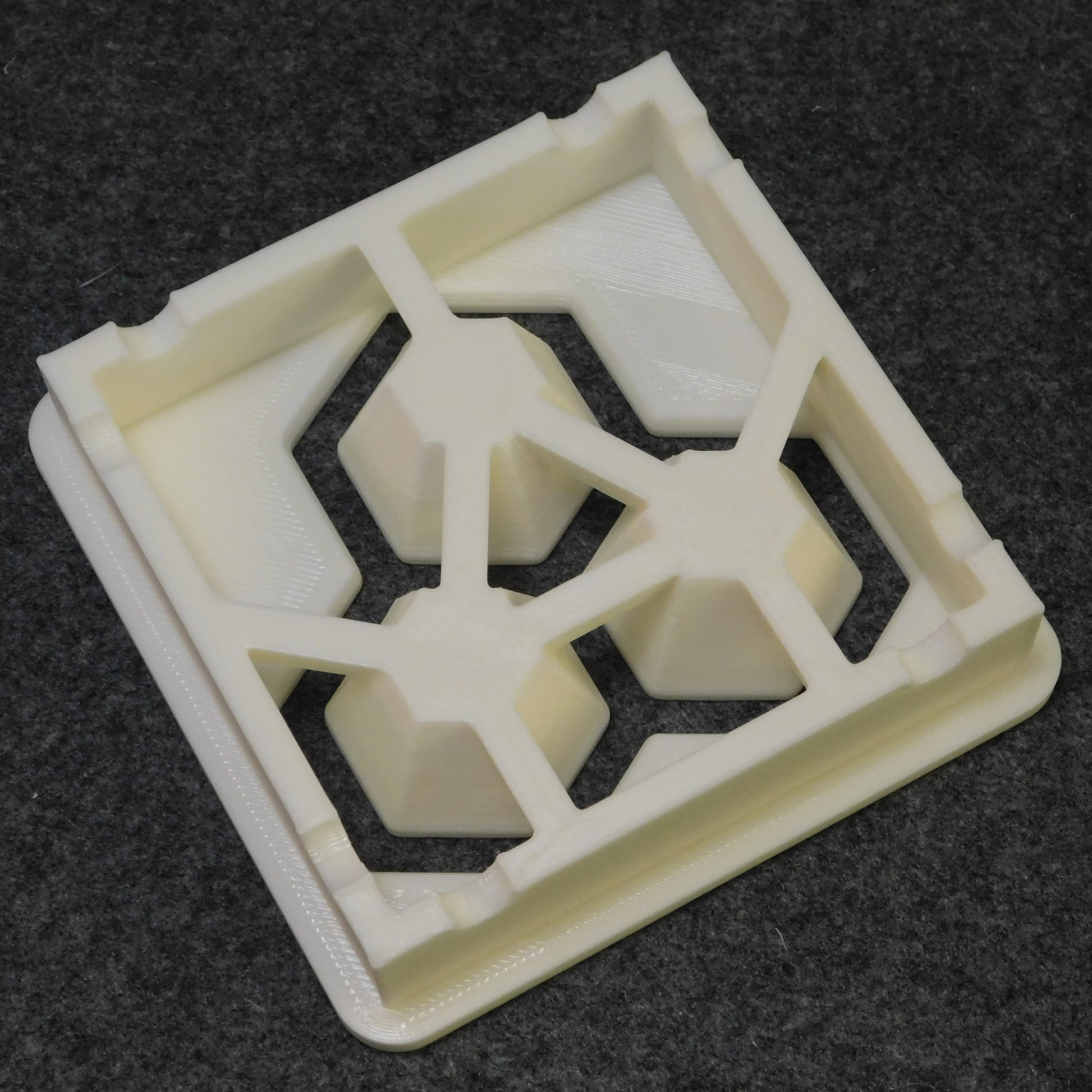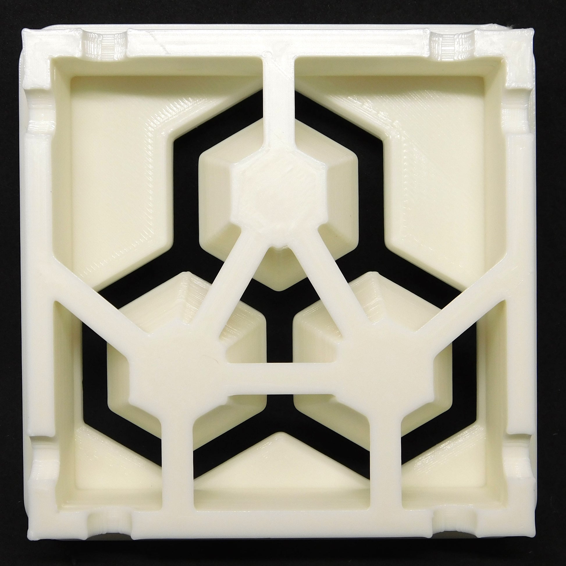 This die extrudes a shape with three connected hexagonal tubes. It fits in 5" square Scott Creek clay extruders.