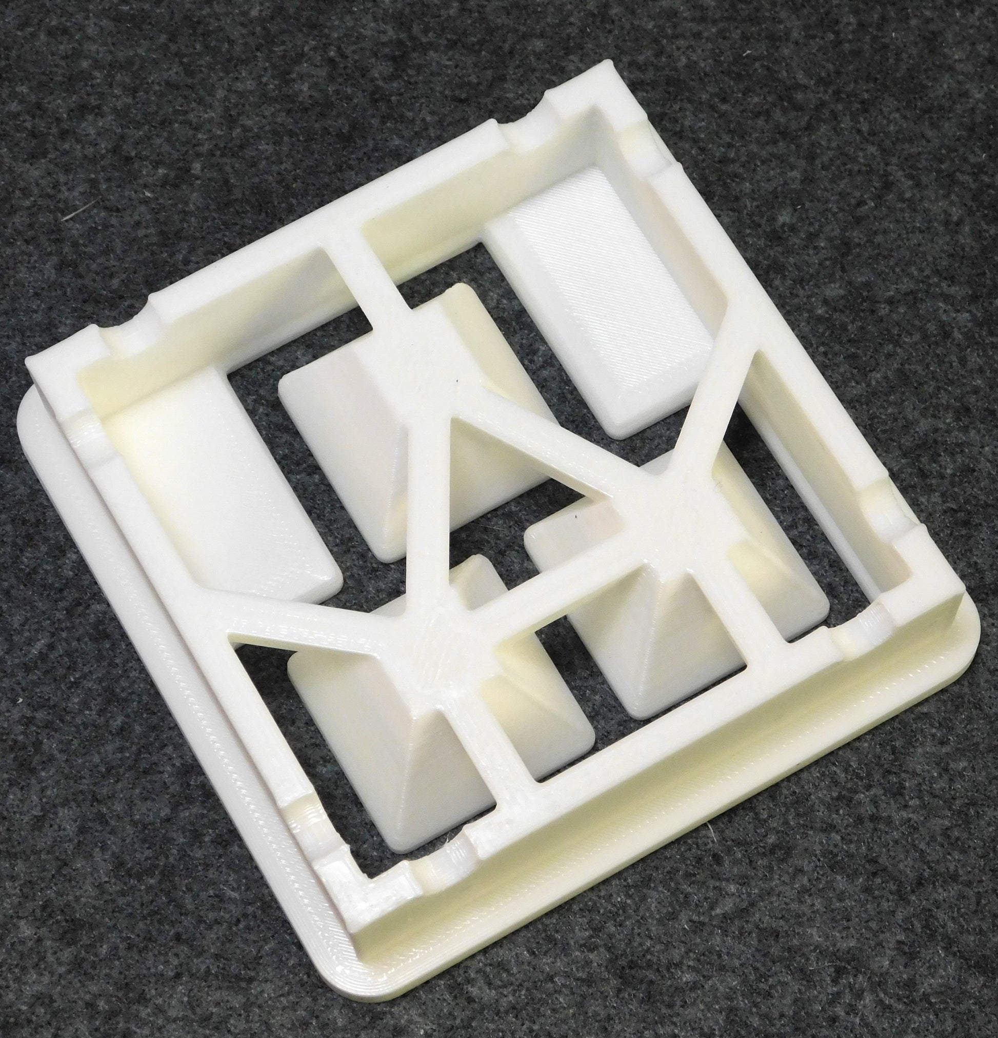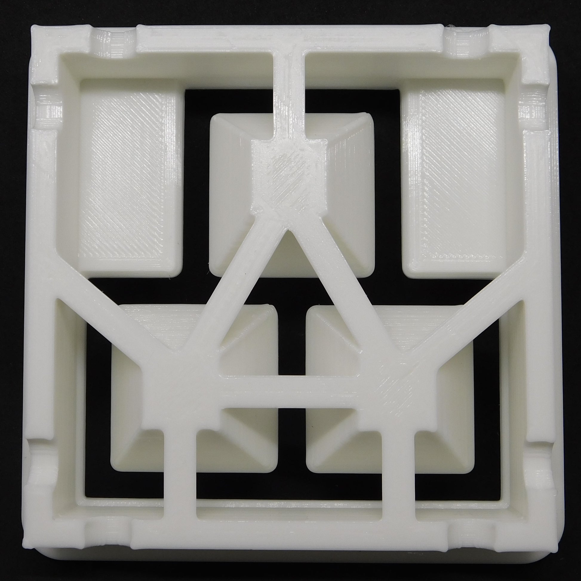 This die extrudes a shape with three connected square tubes. It fits in 5" square Scott Creek clay extruders.