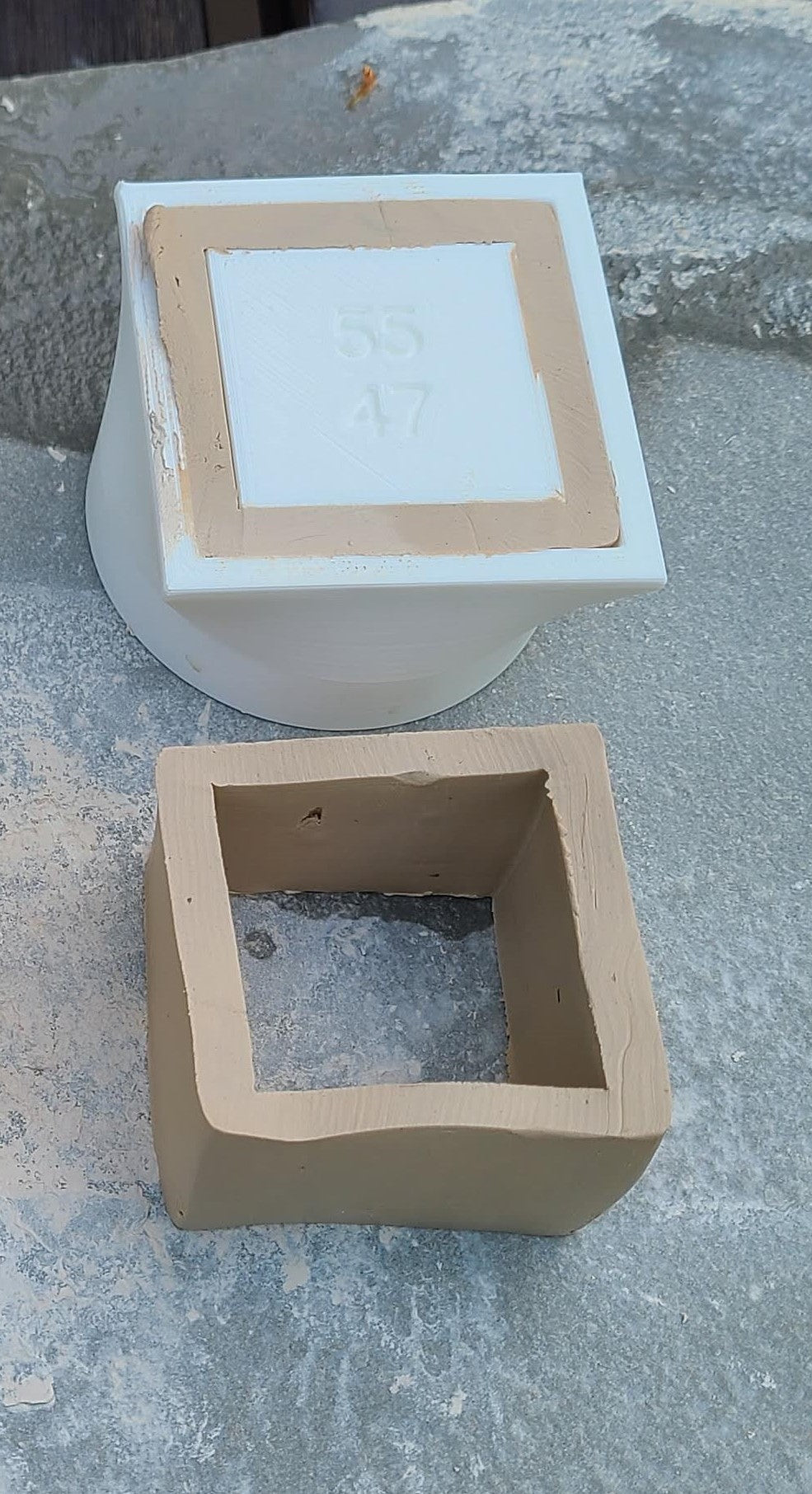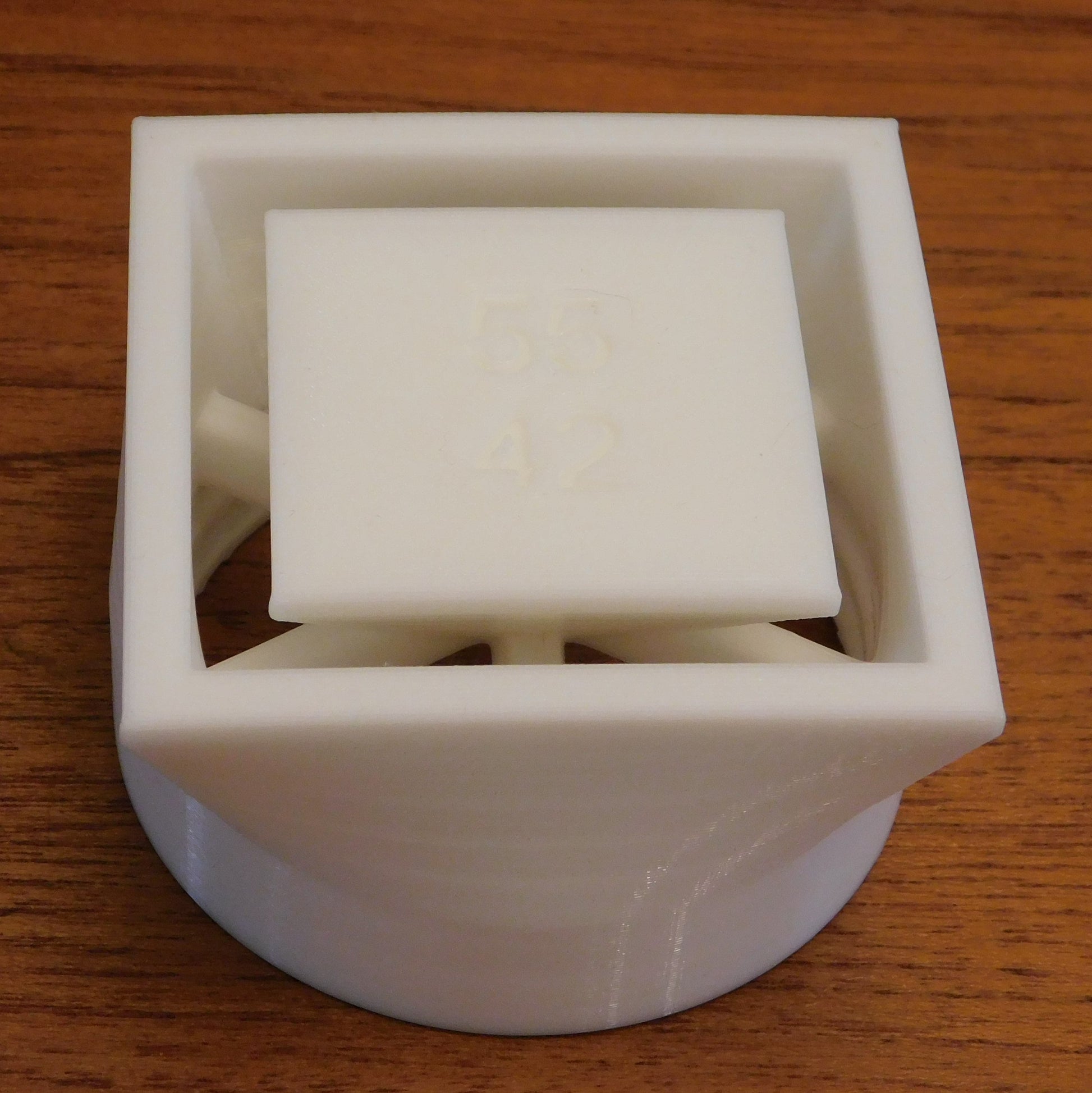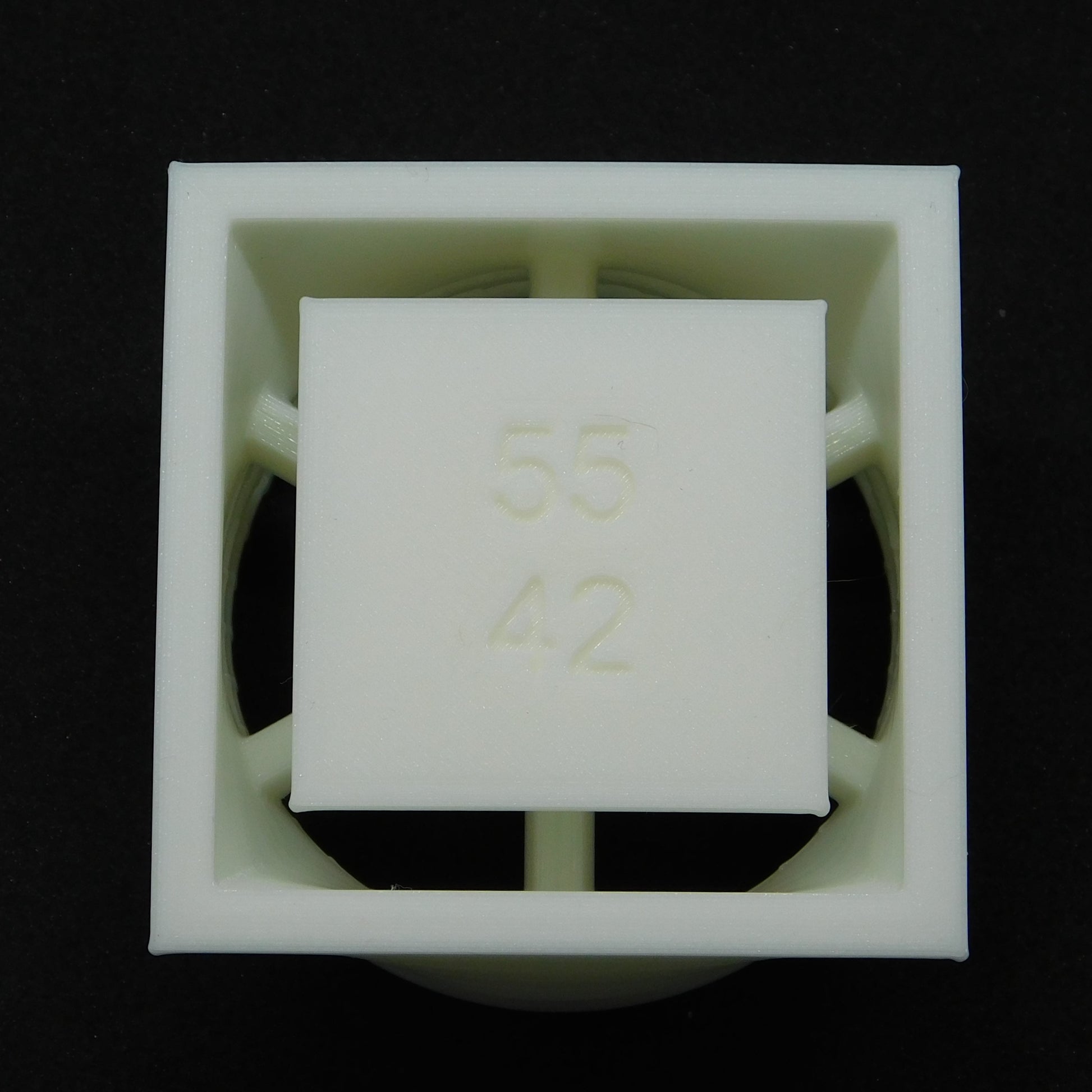 This die extrudes a hollow square shape. It can be use to make bud vases, desk organizers, or ... whatever you imagine. The dies screws onto the extruder in place of the endcap.
