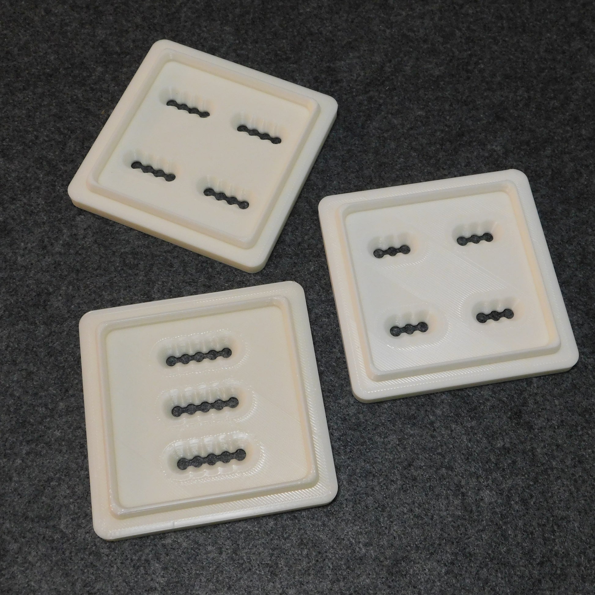 The die and cutter are 3D-printed using PLA filament. PLA is a plastic made from starch (not petrochemicals) and is compostable in industrial composters.