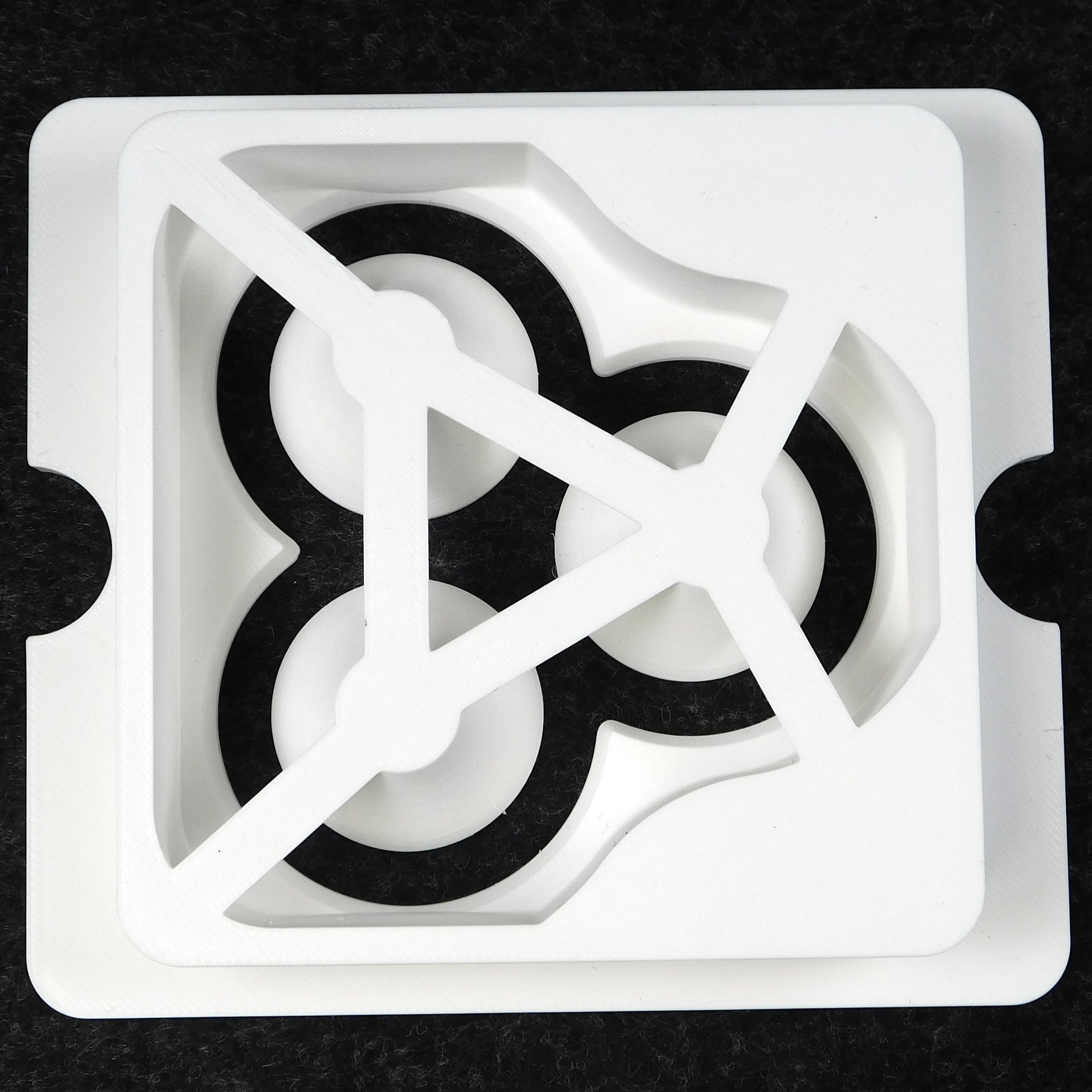 This die extrudes three joined circles, each with a 1/4" wall. It could make a great vase or desk organizer, especially when cut at a slant. The die fits in most 4" square wall-mounted clay extruders including: NorthStar, Bailey, TA Metal Works, and the Amazon generic model.