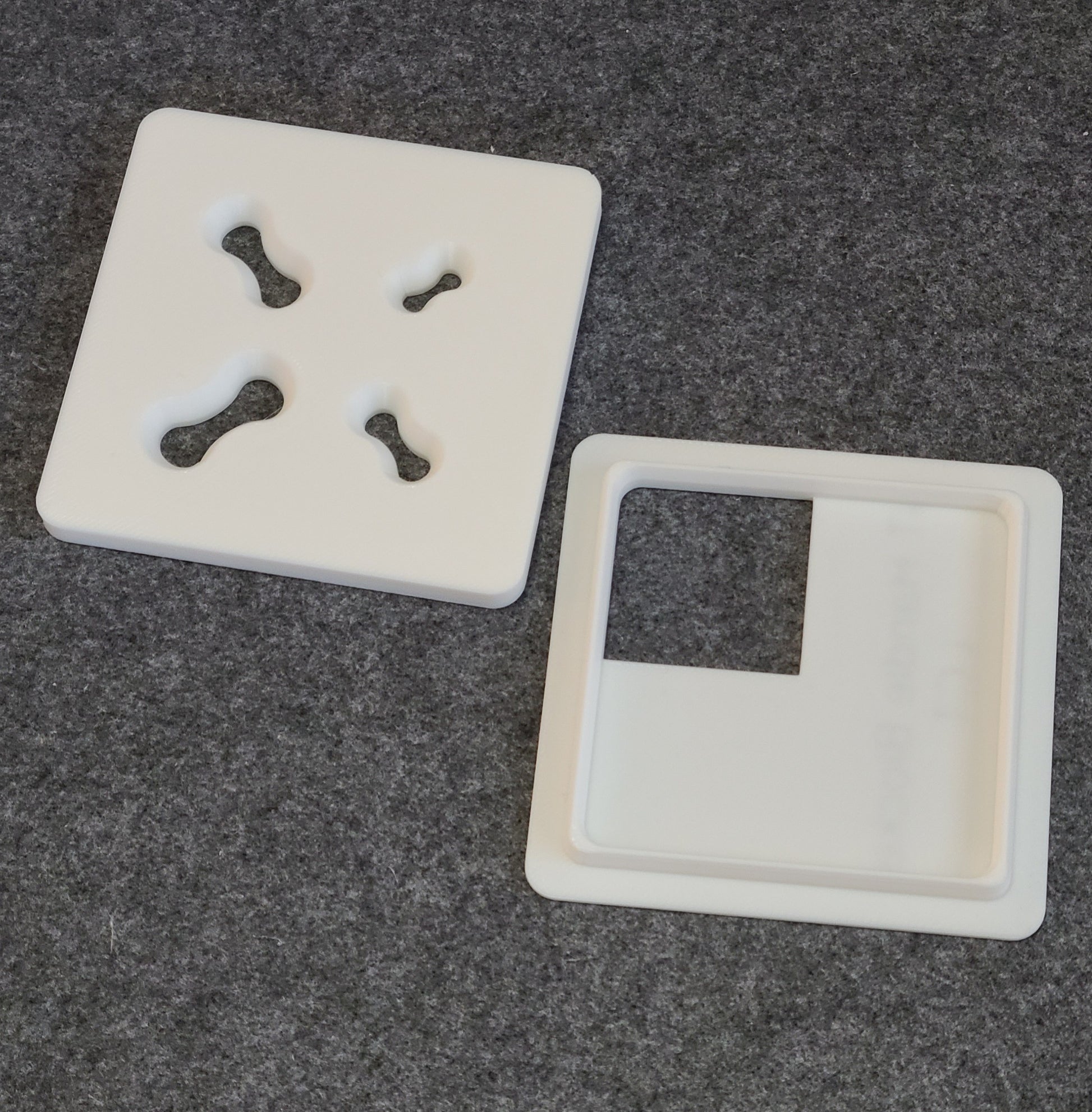 The die and cutter are 3D-printed using PLA filament. PLA is a plastic made from starch (not petrochemicals) and is compostable in industrial composters.