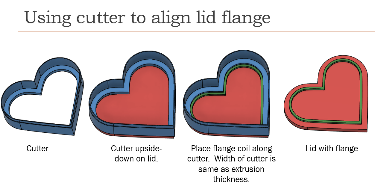 The corresponding cutter is optional. It can be useful to cut a base or lid that exactly matches the extruded shape. The cutter is 3/4" tall. The width of the rim is equal to the wall thickness, so if you flip the cutter over, you can use it as a guide to attach a flange to a lid.