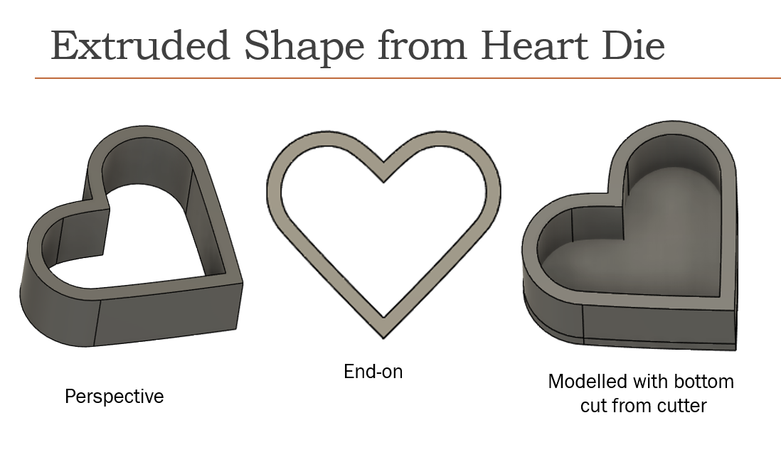 This die extrudes a heart shape. Could make a cute vase or candy box. It fits in 4" square North Star and TA Metal Works extruders.