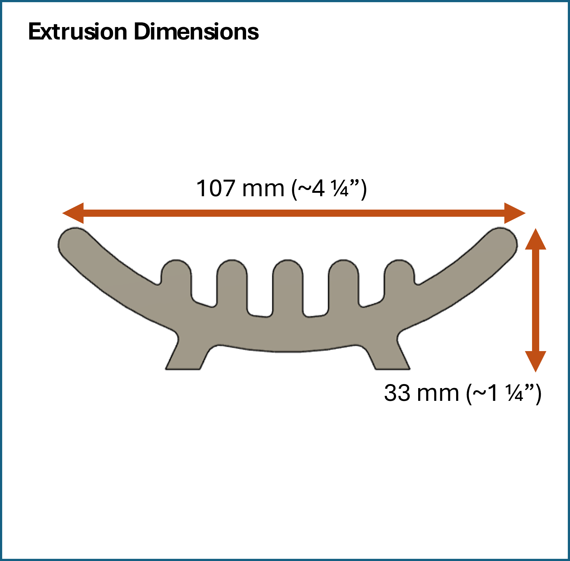 Extrusion Dimensions: The extrusion is 4 1/4" wide by 1 1/4" tall.