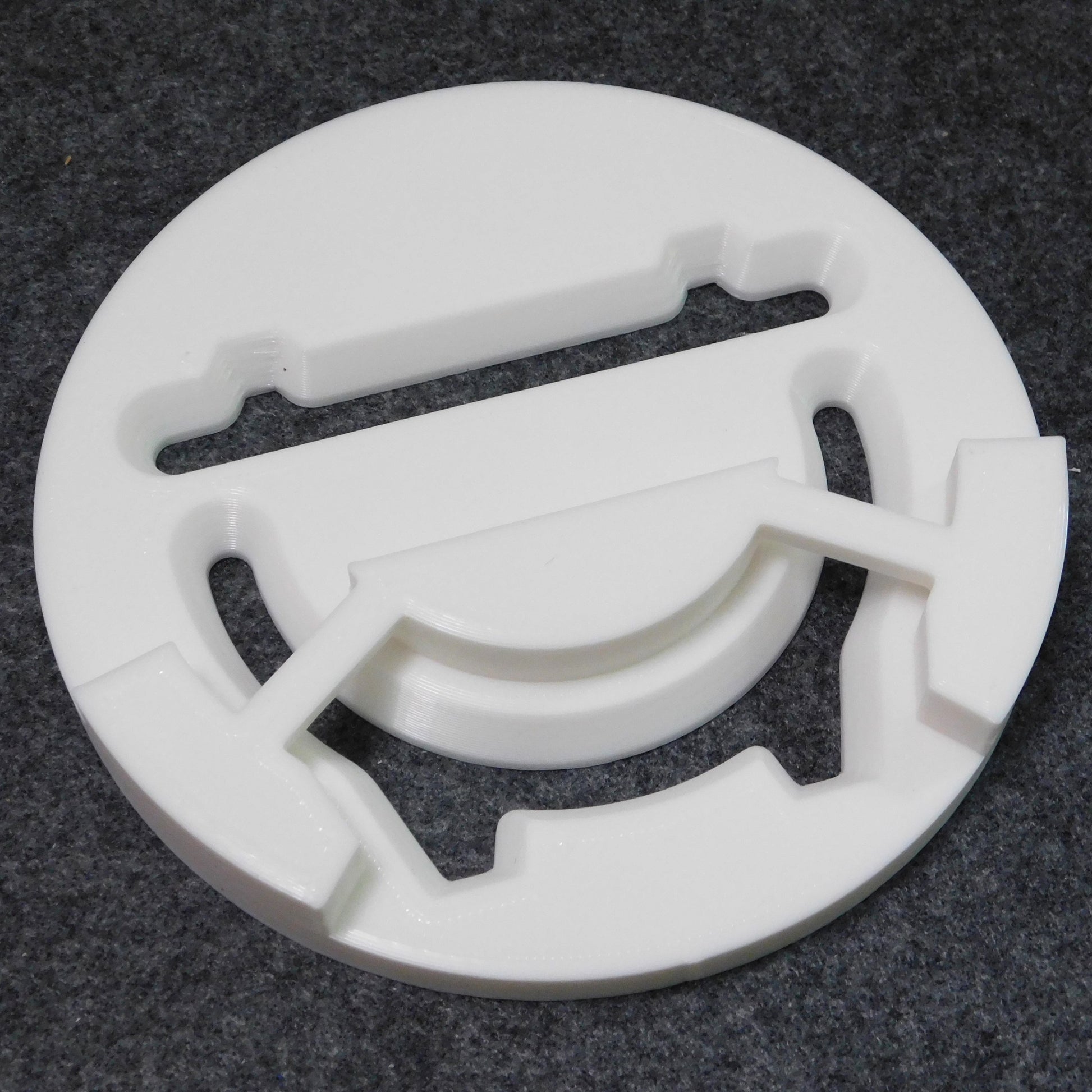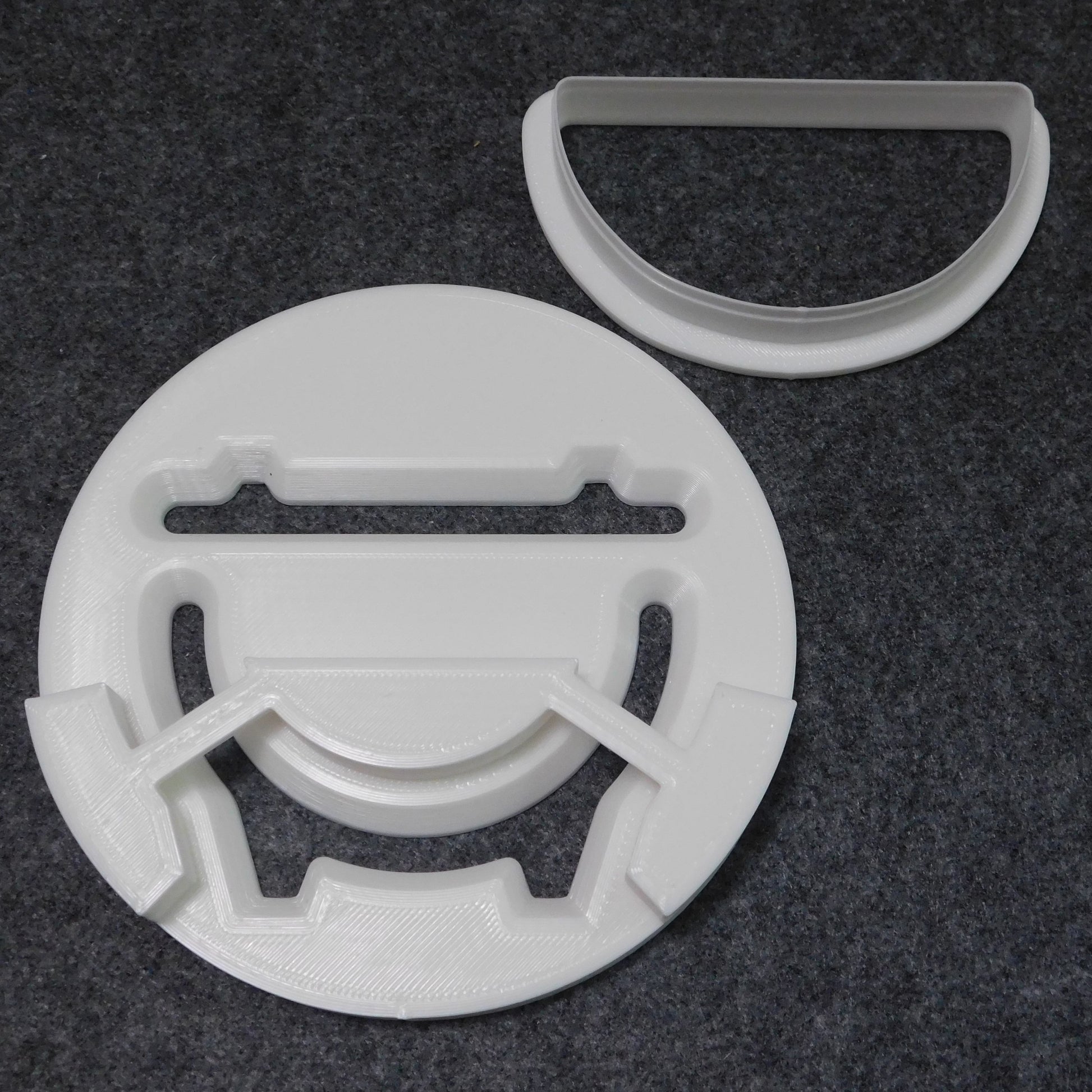 The die and cutter are 3D-printed using PLA filament. PLA is a plastic made from starch (not petrochemicals) and is compostable in industrial composters.