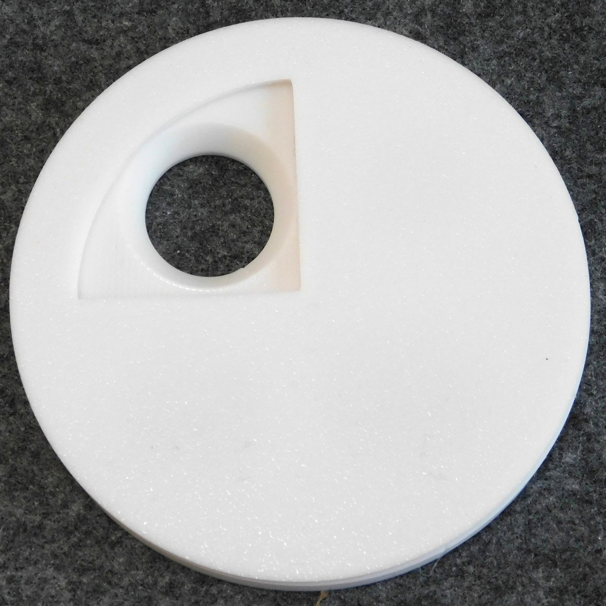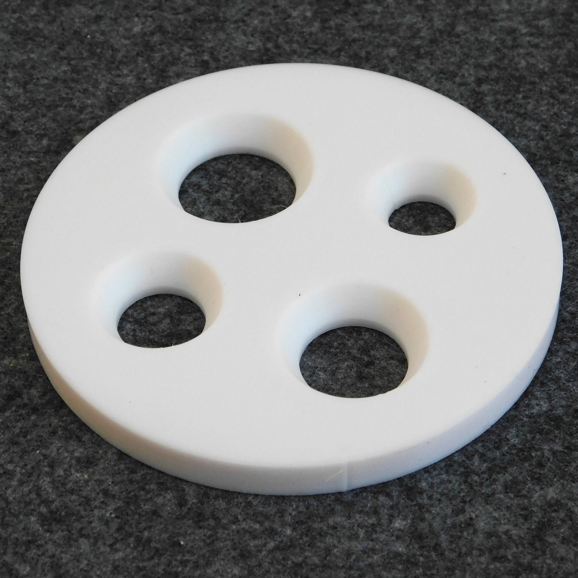 The die and cutter are 3D-printed using PLA filament. PLA is a plastic made from starch (not petrochemicals) and is compostable in industrial composters.