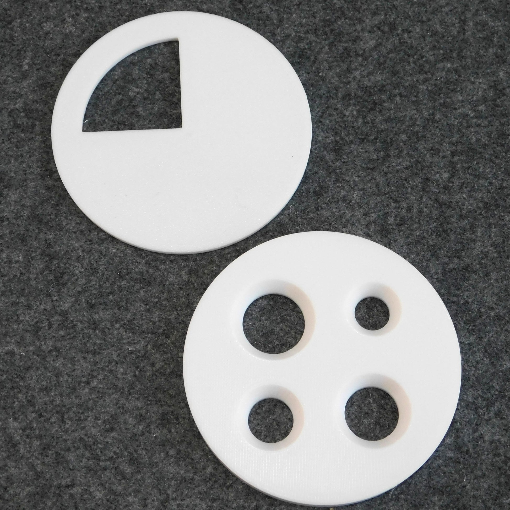 These dies extrude coil shapes. The dies fit in Steel Pottery 4" clay extruders.