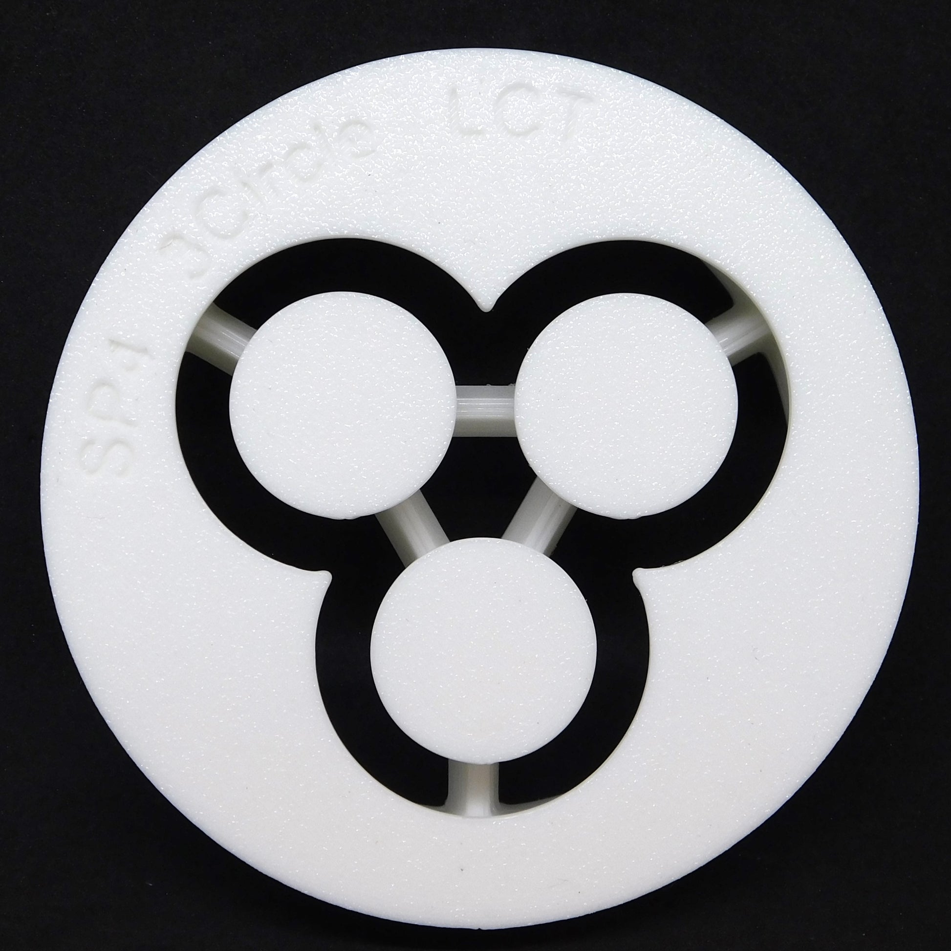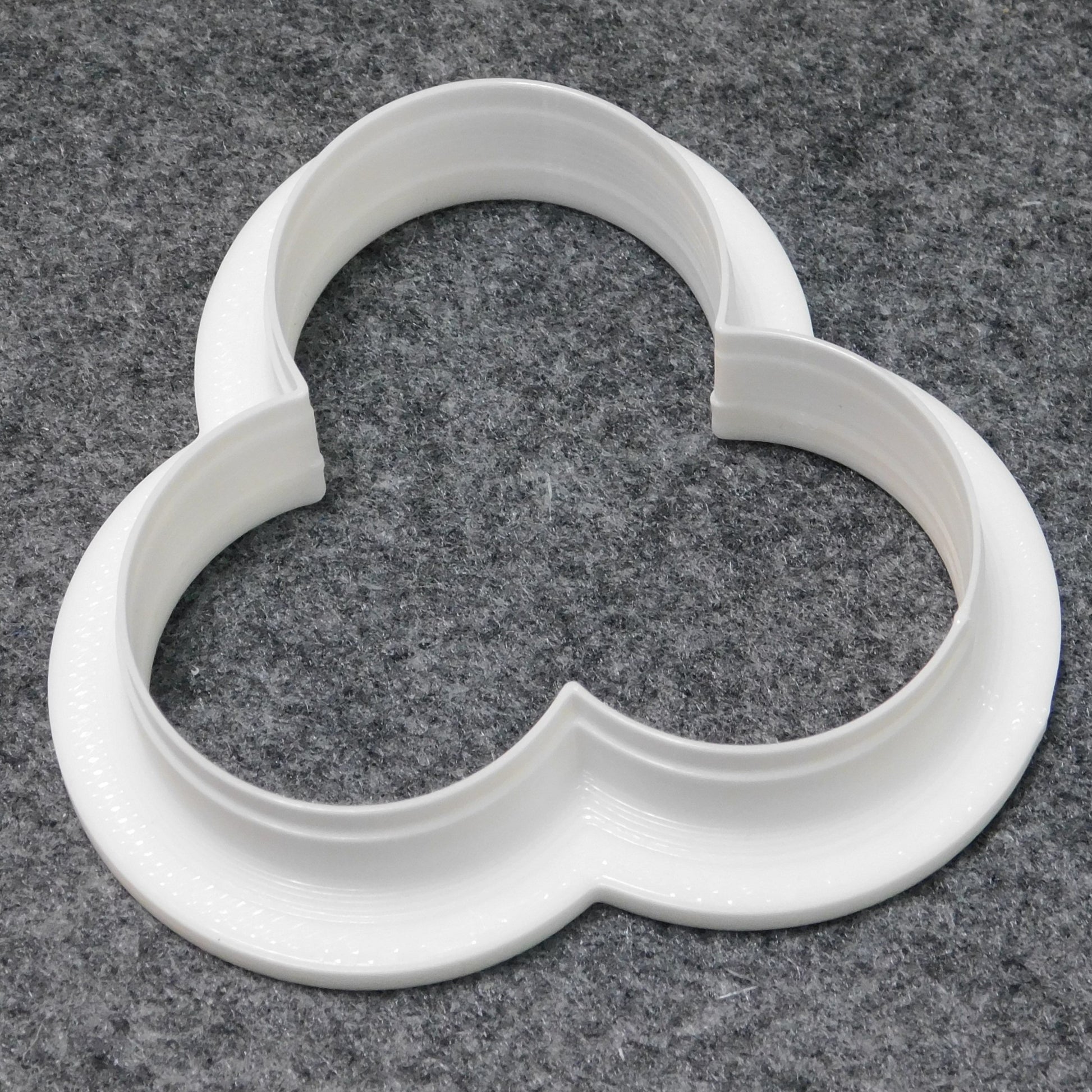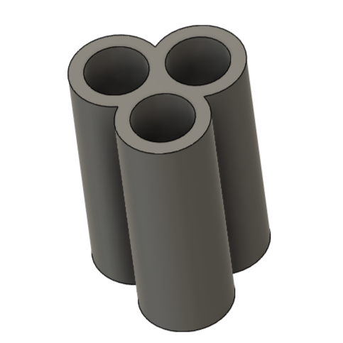 This die extrudes an shape with three connected tubes. It fits in 4" Steel Pottery clay extruders.