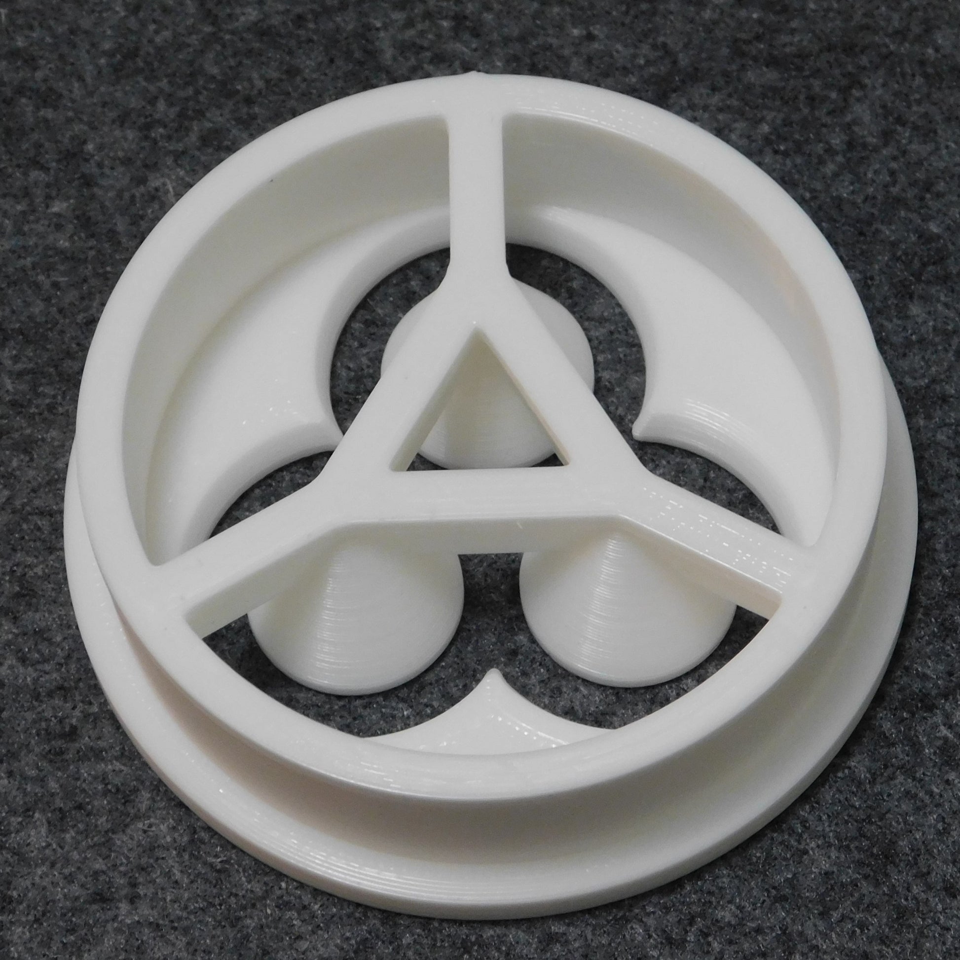 The die and cutter are 3D-printed using PLA filament. PLA is a plastic made from starch (not petrochemicals) and is compostable in industrial composters.